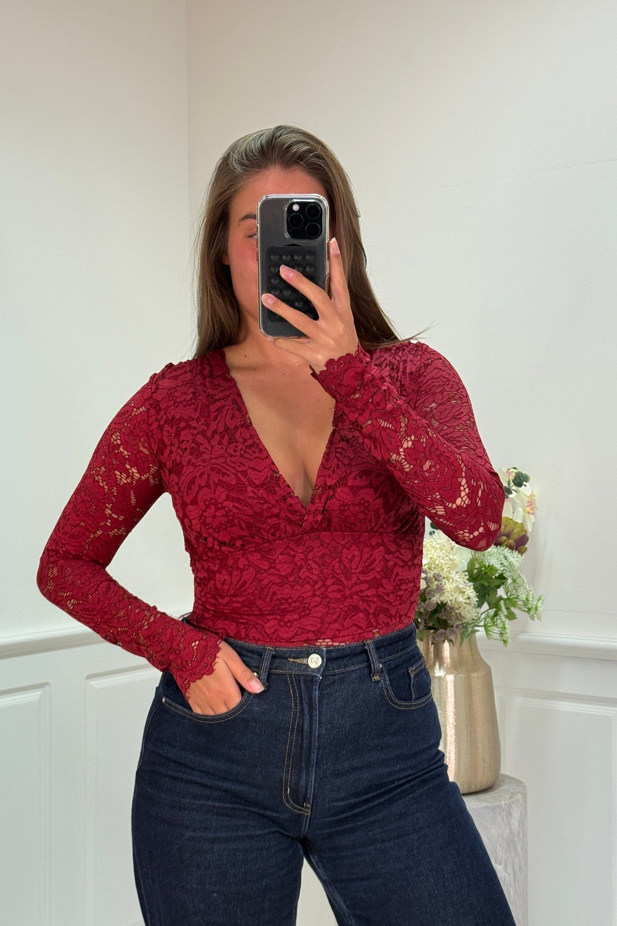 A-bee Anabella Bodystocking Farge: Burgundy