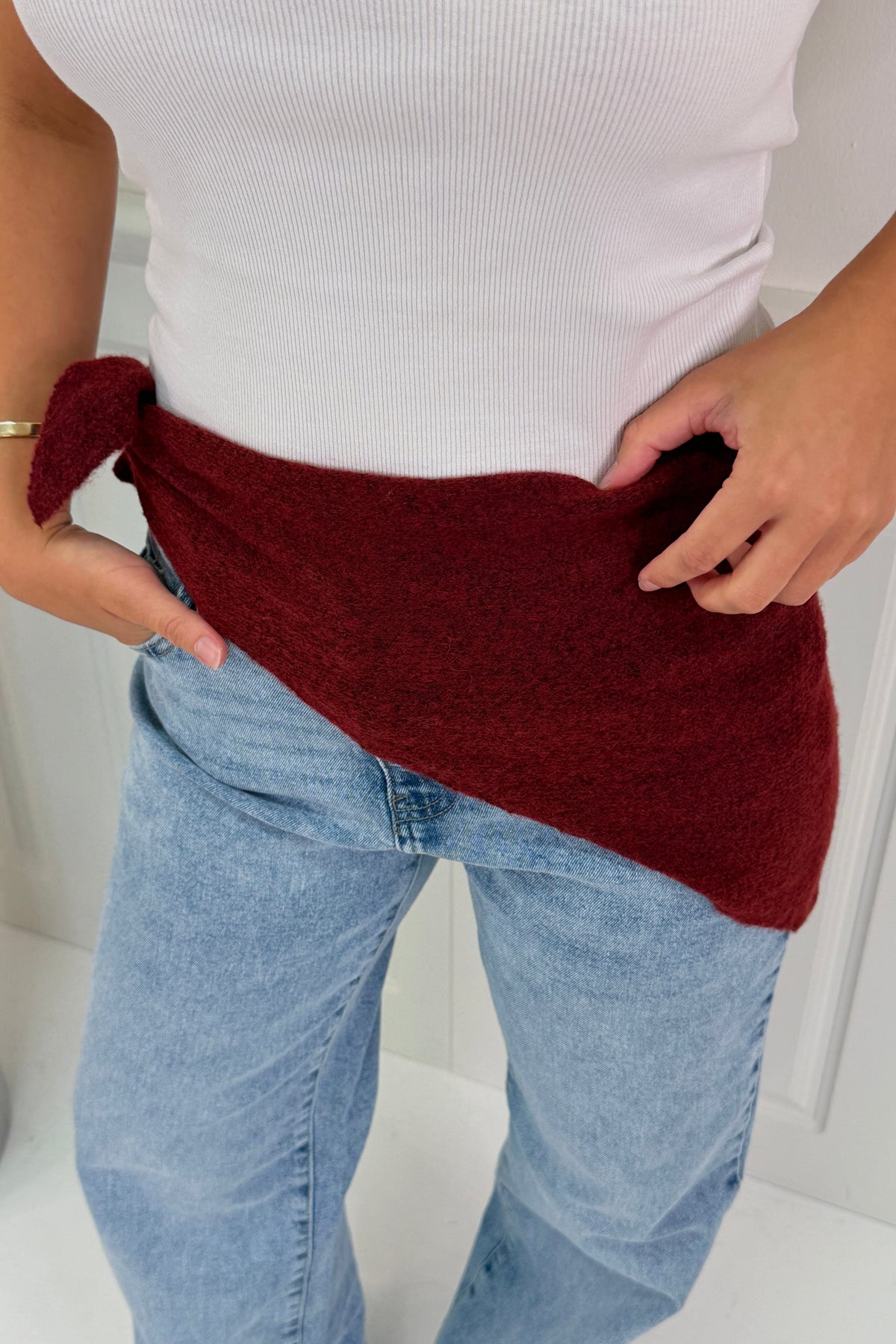 Burgunderrødt skjerf fra A-bee, laget av 80 % viskose og 20 % ull. Det ensfargede designet gjør det lett å matche med ulike antrekk.