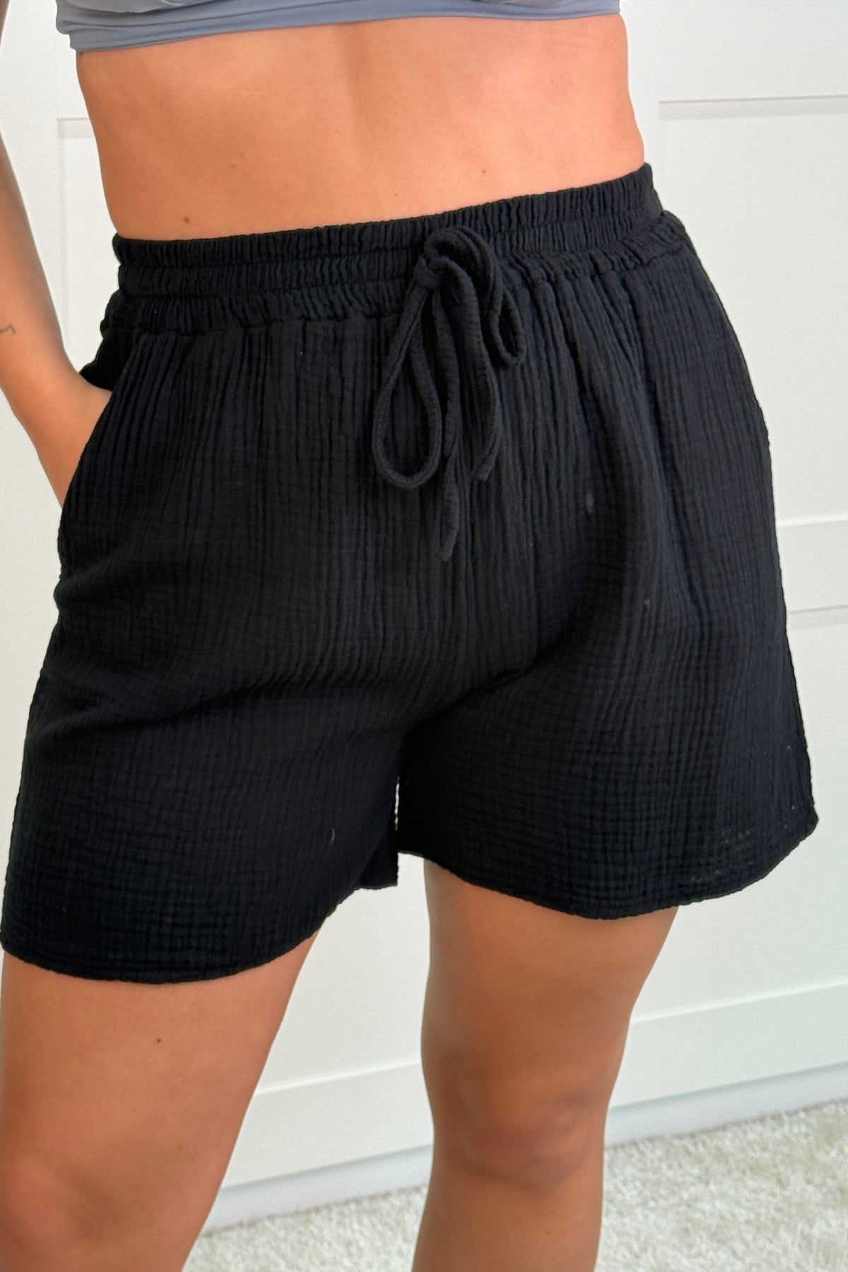 Svarte høytlivede shorts fra A-bee. Laget i bomull med knytebånd i midjen. Shortsene har en løs passform og en klassisk ensfarget stil.