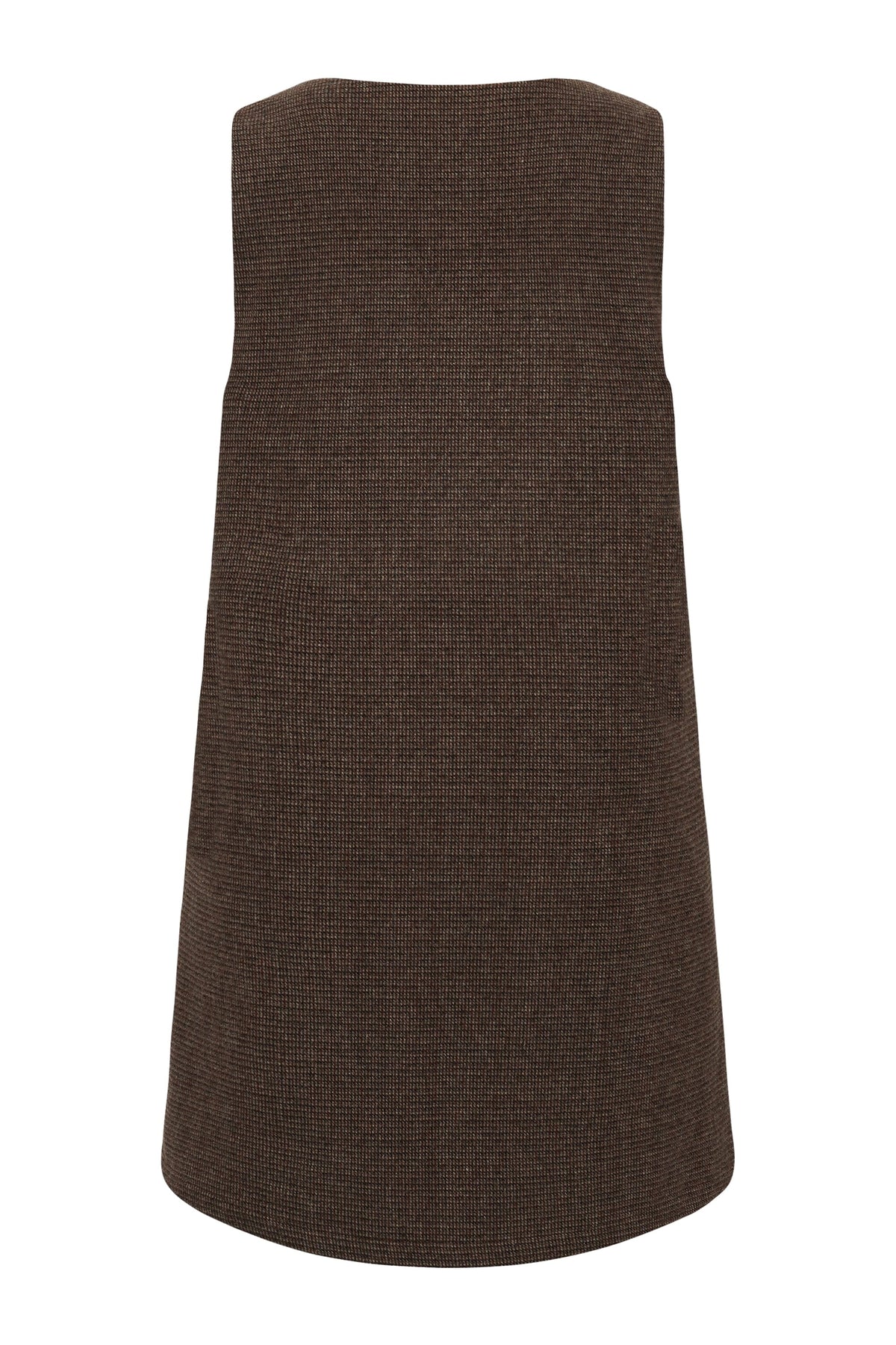 Brun/rustrød kjole fra A-View i et rutete mønster. Kjolen er ermeløs med V-utringning og har en lett A-formet silhuett.