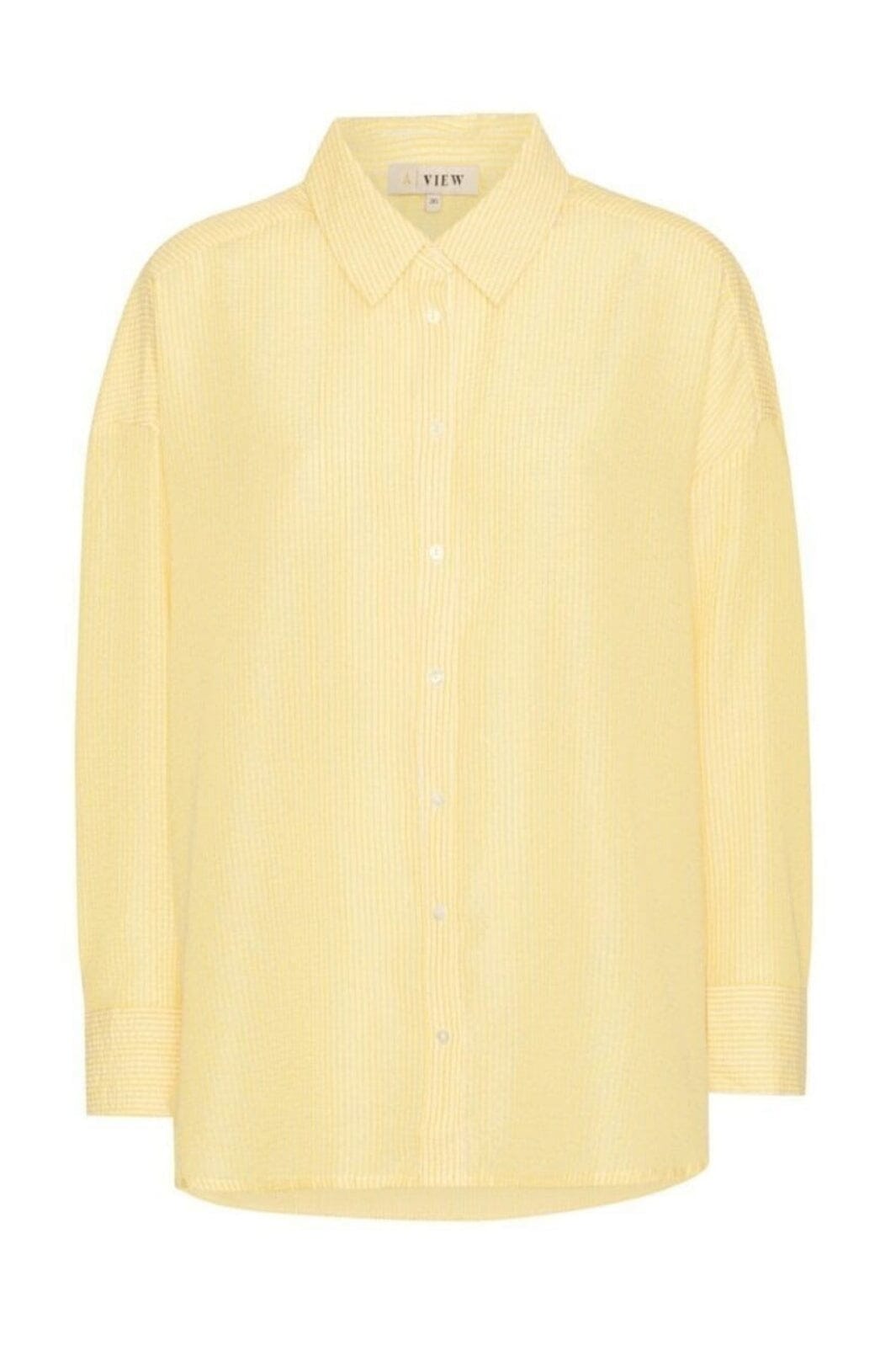 Gul skjorte fra A-View i seersucker-kvalitet med striper. Skjorten har krage, lange ermer med dobbeltmanchetter og knapper foran. Den oversized passformen gir en avslappet silhuett.