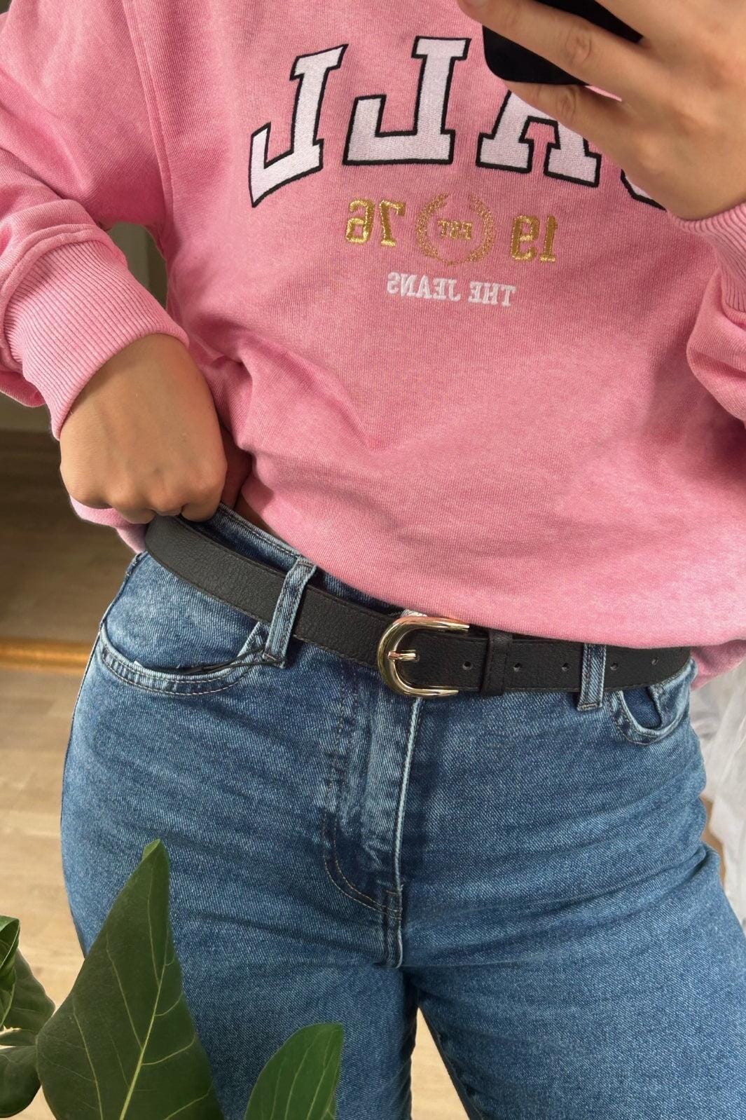Svart belte fra Anobel Copenhagen i kunstlær med gullfarget spenne. Beltet har en normal passform og er laget av et slitesterkt materiale.