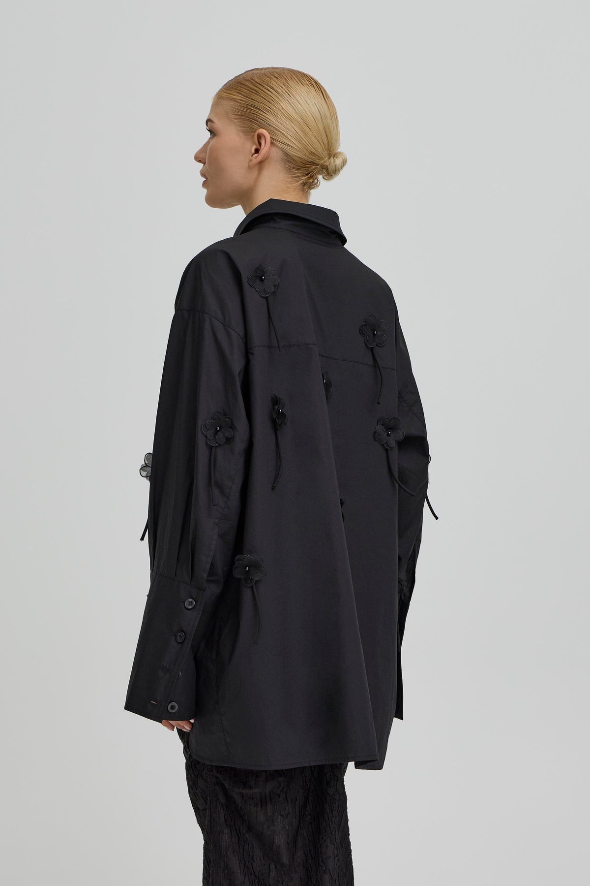 Sort skjorte fra Ball, laget av 100 % bomull. Skjorten har dekorative sømmer og knytedetaljer som gir den et kunstnerisk uttrykk.