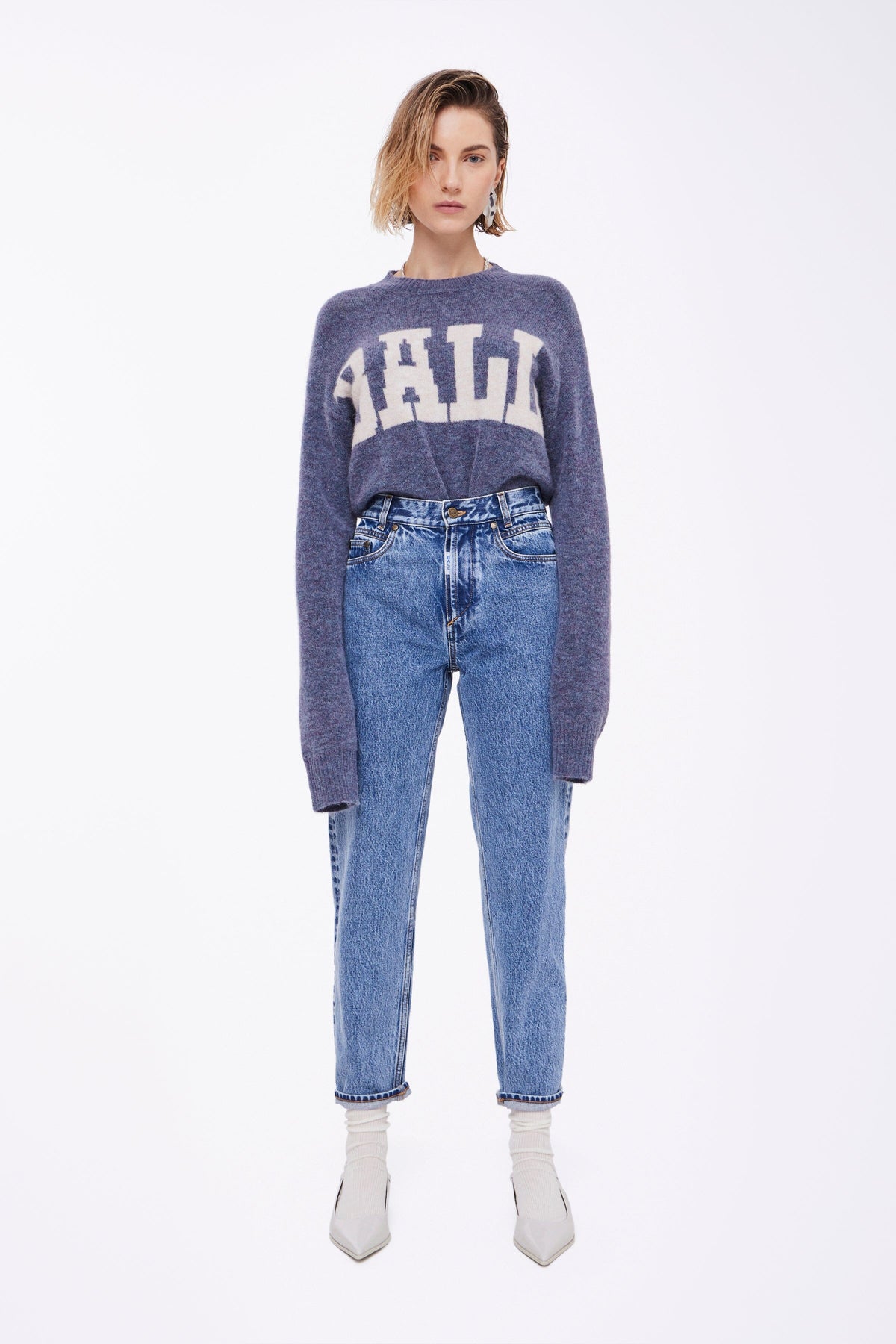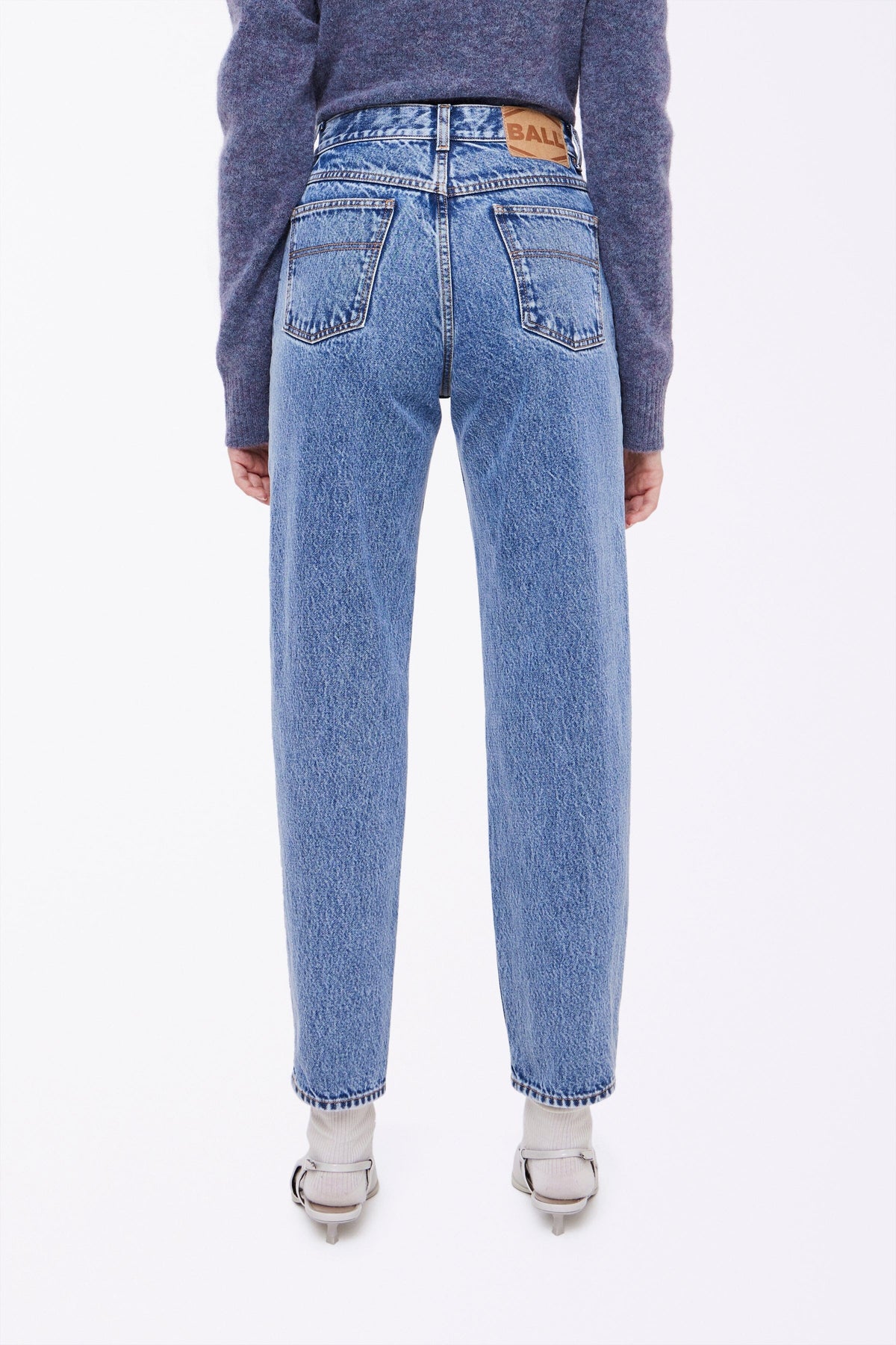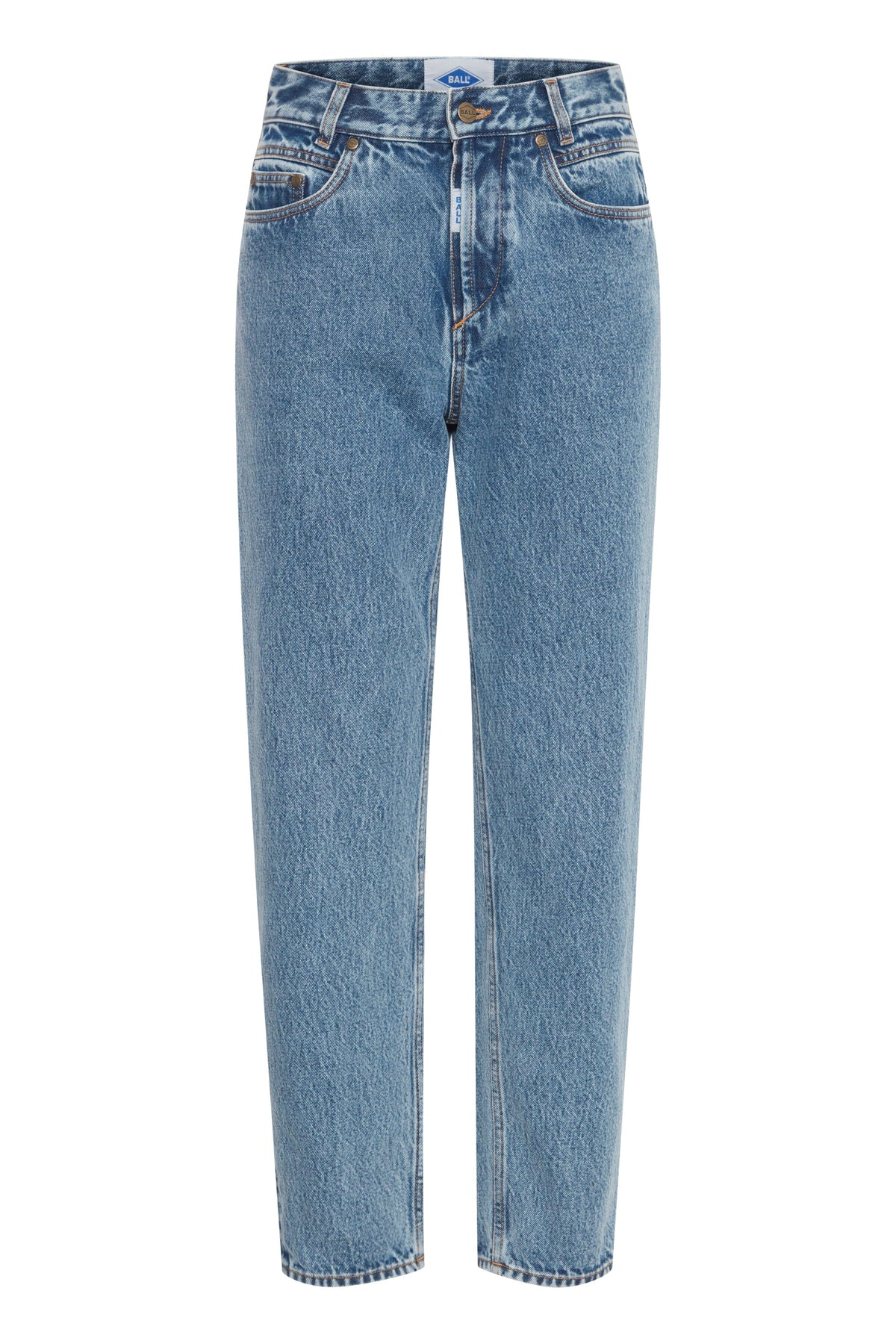 Jeans fra Ball med en lys blå marble wash-behandling. De har høy midje og smal benform som går til ankelen. Glidelås og knapper i lukningen.