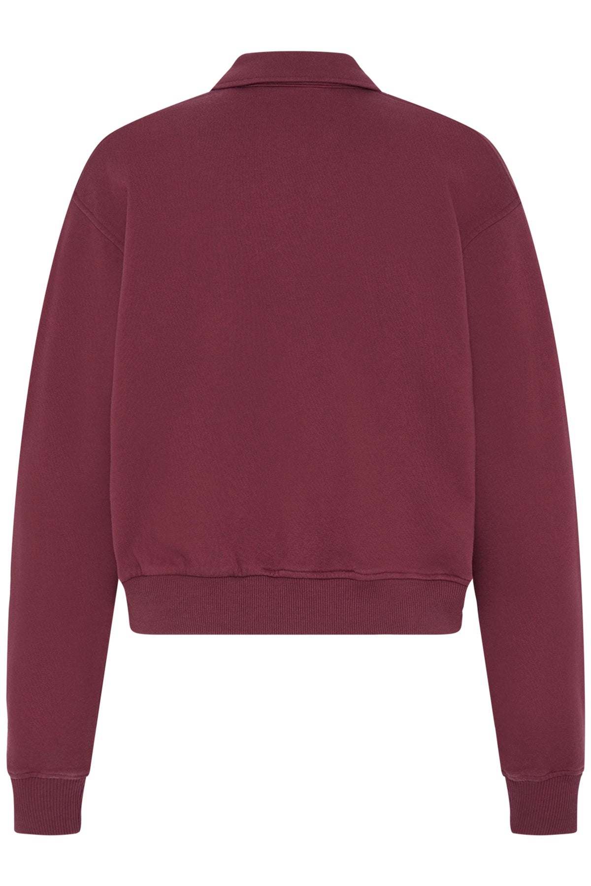 En polosweatshirt fra Ball, laget av 100 % bomull i en mørk bordeauxnyanse. Sweatshirten har en klassisk polokrage med tre knapper.