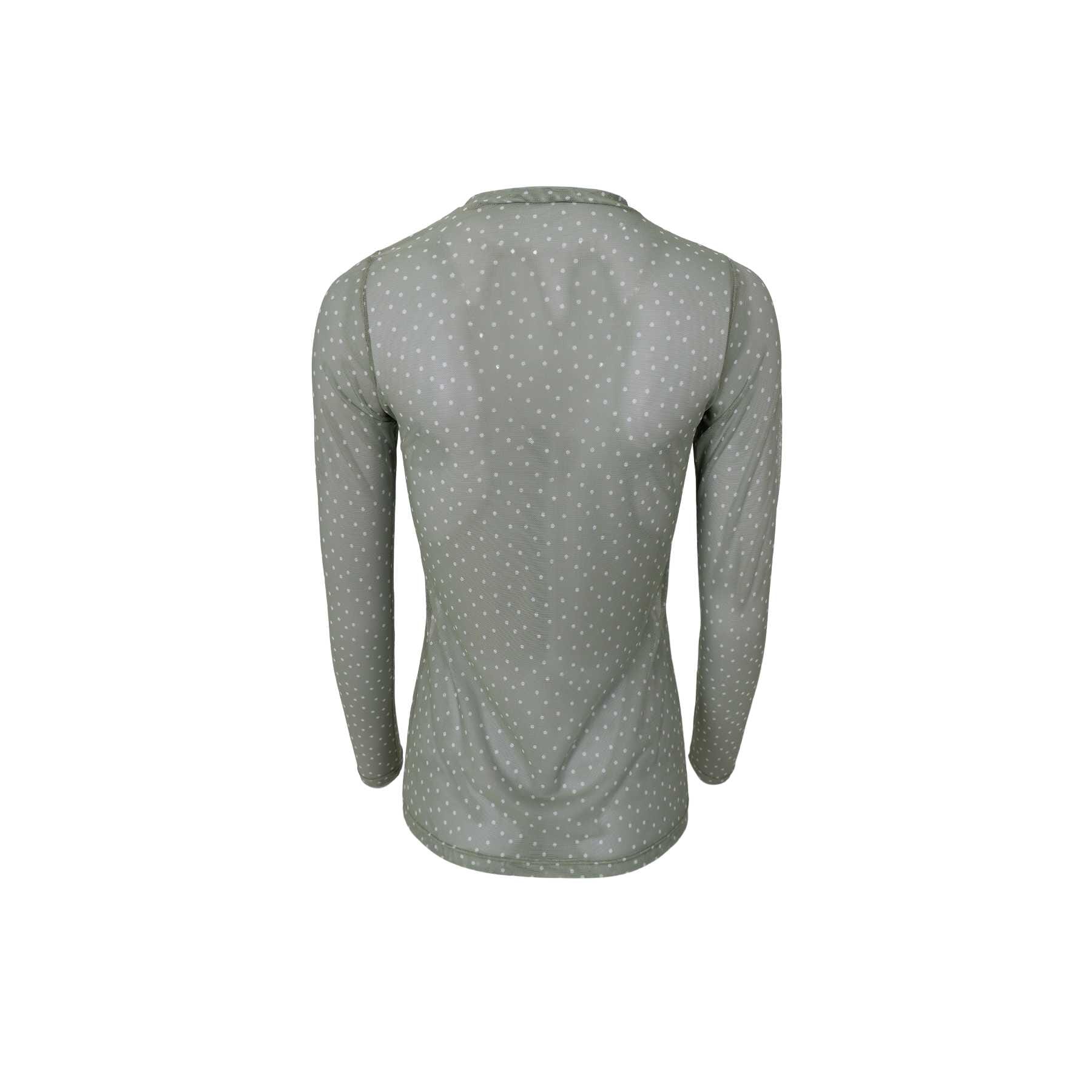 Meshbluse fra Black Colour i grønn med prikker. Blusen har en rund halsutringning, lange ermer og en tettsittende passform.