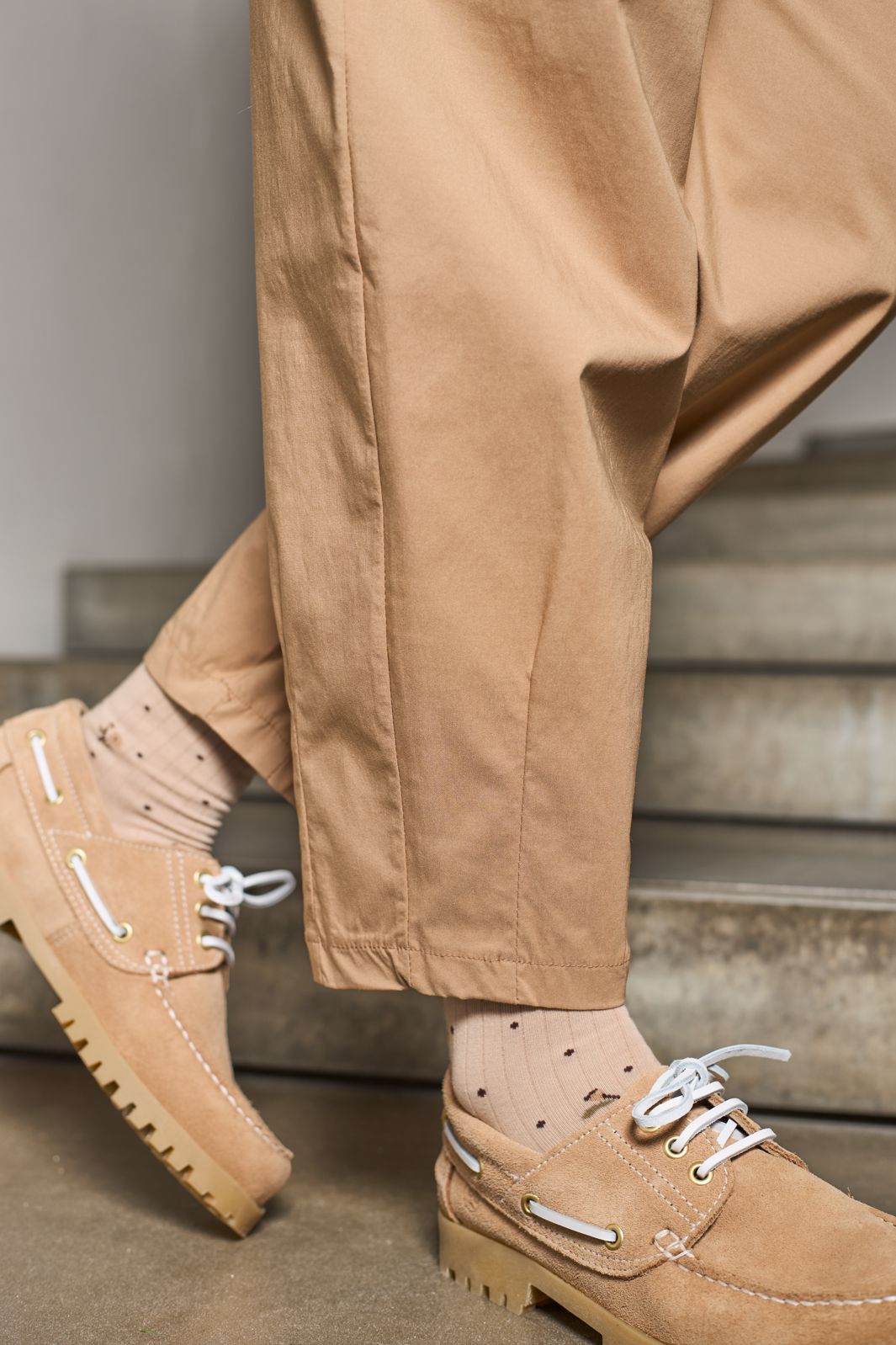 Beige bukser fra Black Colour i en løs passform. Buksene går til midt på leggen og har beltestropper.