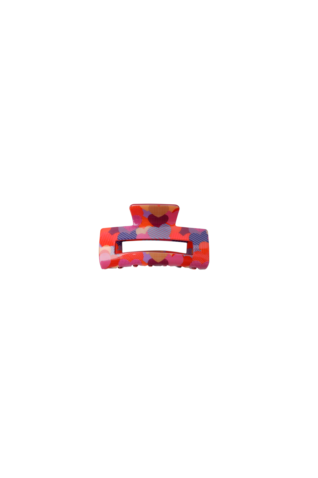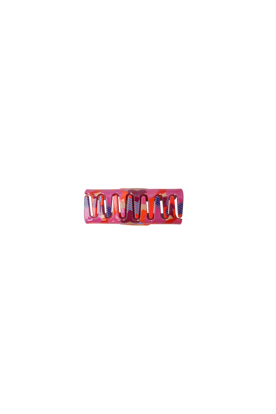 Hårklype fra Black Colour, laget av 100 % akryl med et fargerikt mønster i røde, rosa, lilla og oransje nyanser.