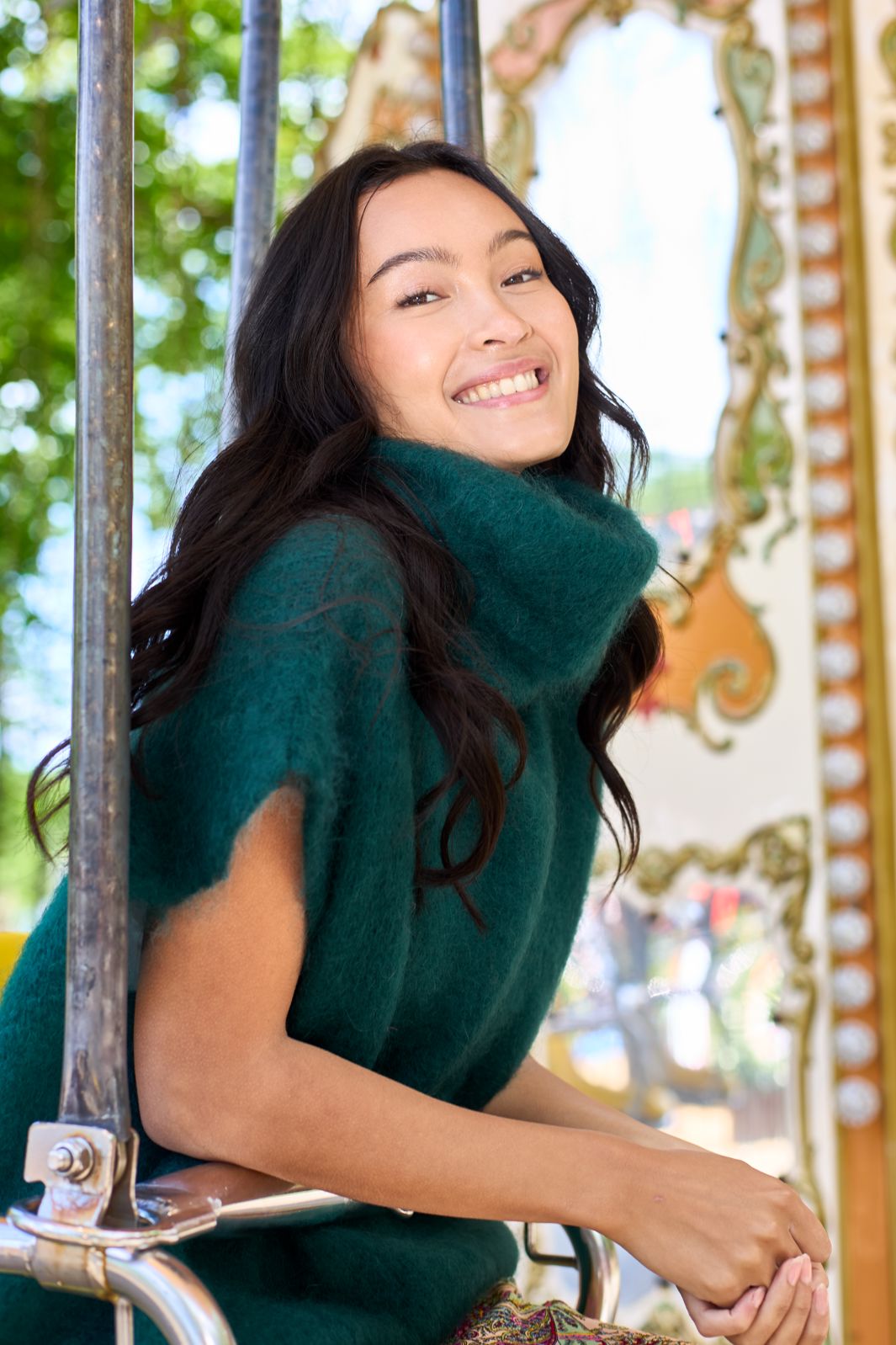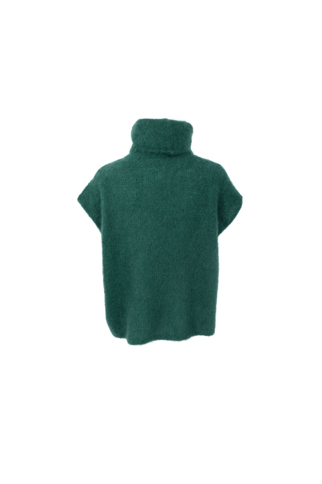 Mørkegrønn rullekragevest fra Black Colour med høy hals og kort erme. Den myke vesten har en oversized passform og er laget av mohair-blanding med en strukturert overflate.