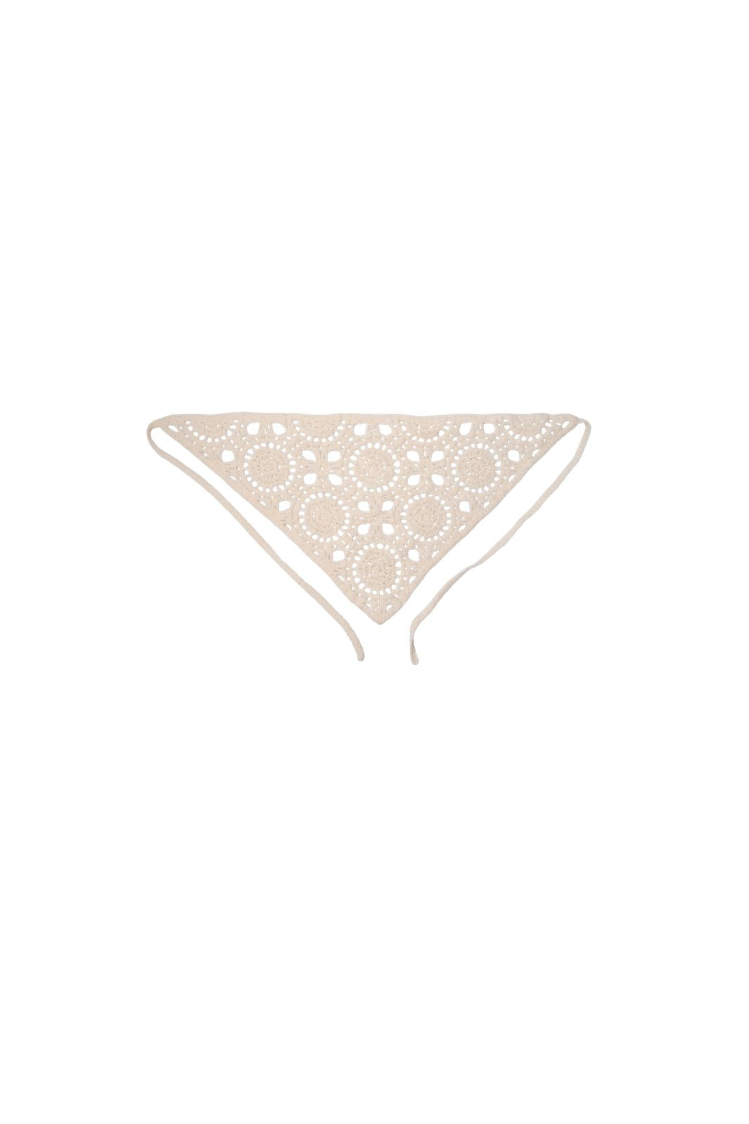 Heklet skjerf fra Black Colour i krem. Trekantet form med knytebånd i hjørnene for feste.