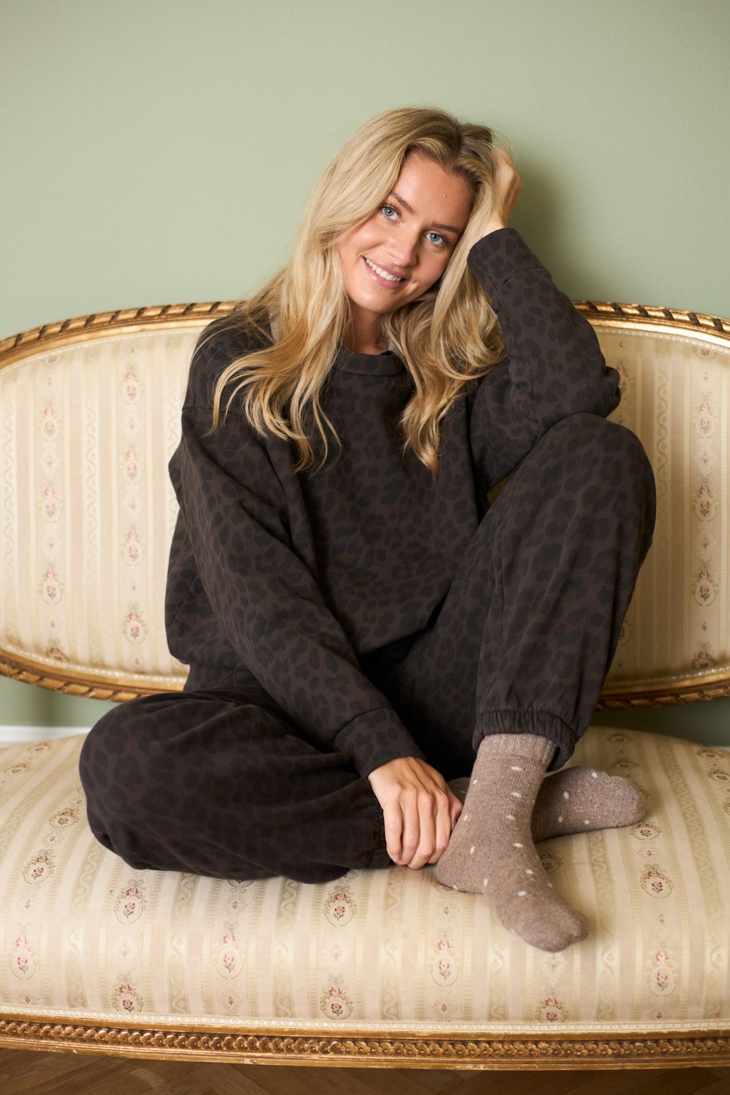 En sweatshirt fra Black Colour med et mørkt leopardmønster i brune nyanser. Sweatshirten har en løs passform og er laget av bomull.
