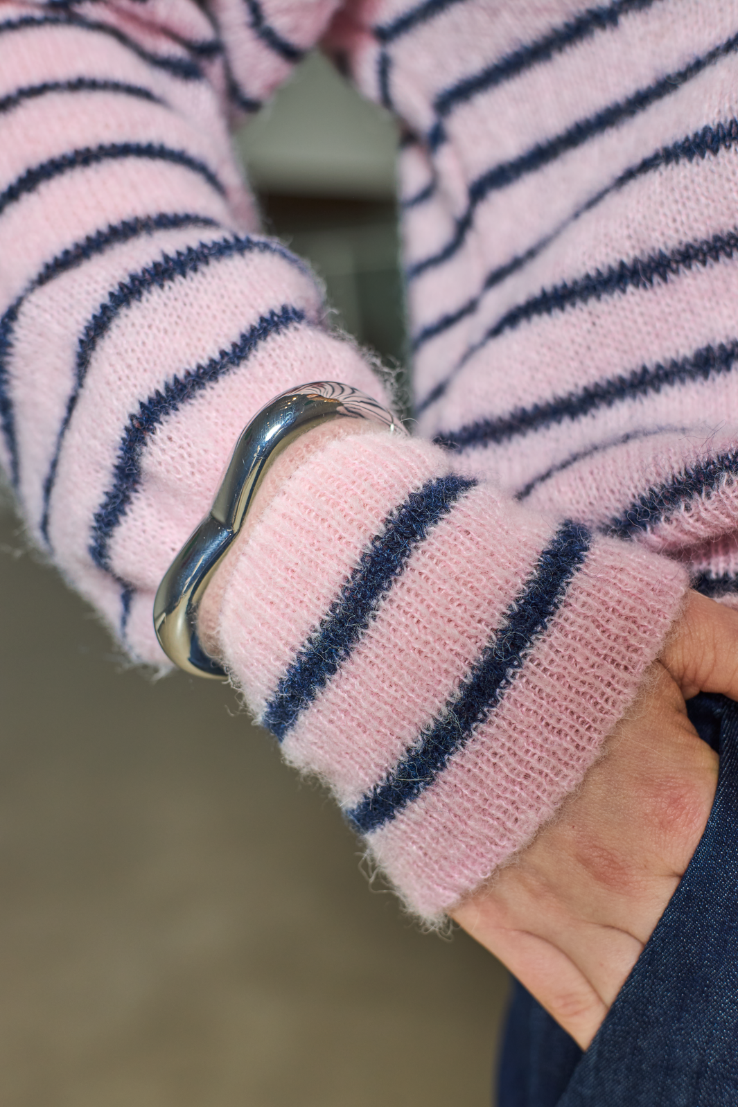 Sølvfarget armbånd fra Black Colour, laget av 100 % legering. Armbåndet har en bølget, organisk form med en skinnende overflate.