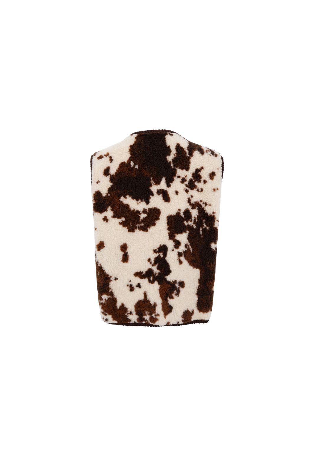 Vest fra Black Colour i brunt og kremfarget dyremønster. Vesten er laget av polyester og har en ermeløs stil med knappelukking.