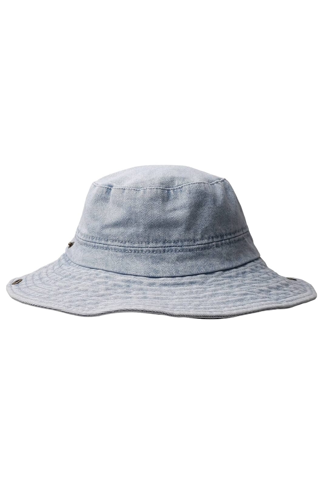 Denimhatt fra Black Colour i en lys denimfarge. Hatten er laget av bomull og har en klassisk cowboyinspirert form med oppbrettede kanter.