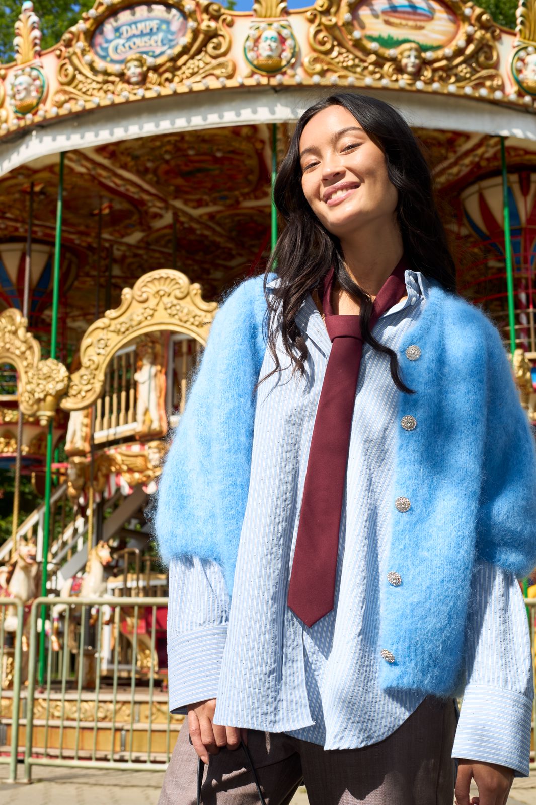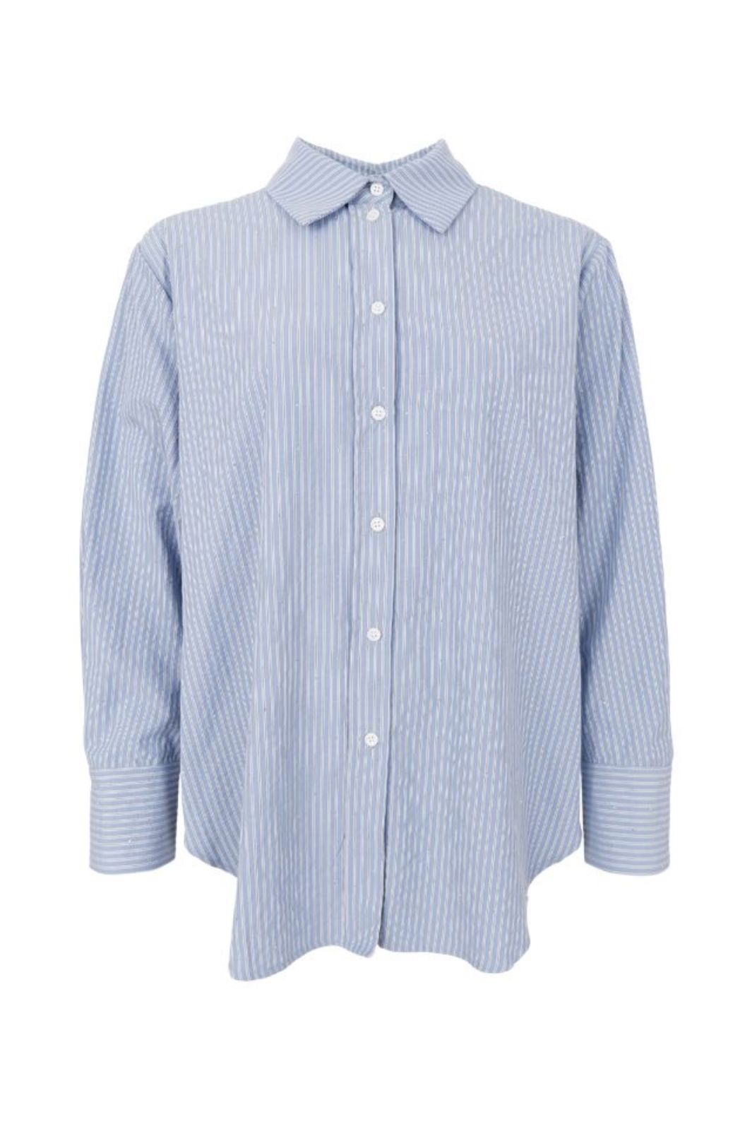 Stripete skjorte fra Black Colour i lyseblå. Skjorten har paljetter som detalj og en oversized passform med klassisk skjortekrage og knapper hele veien ned.