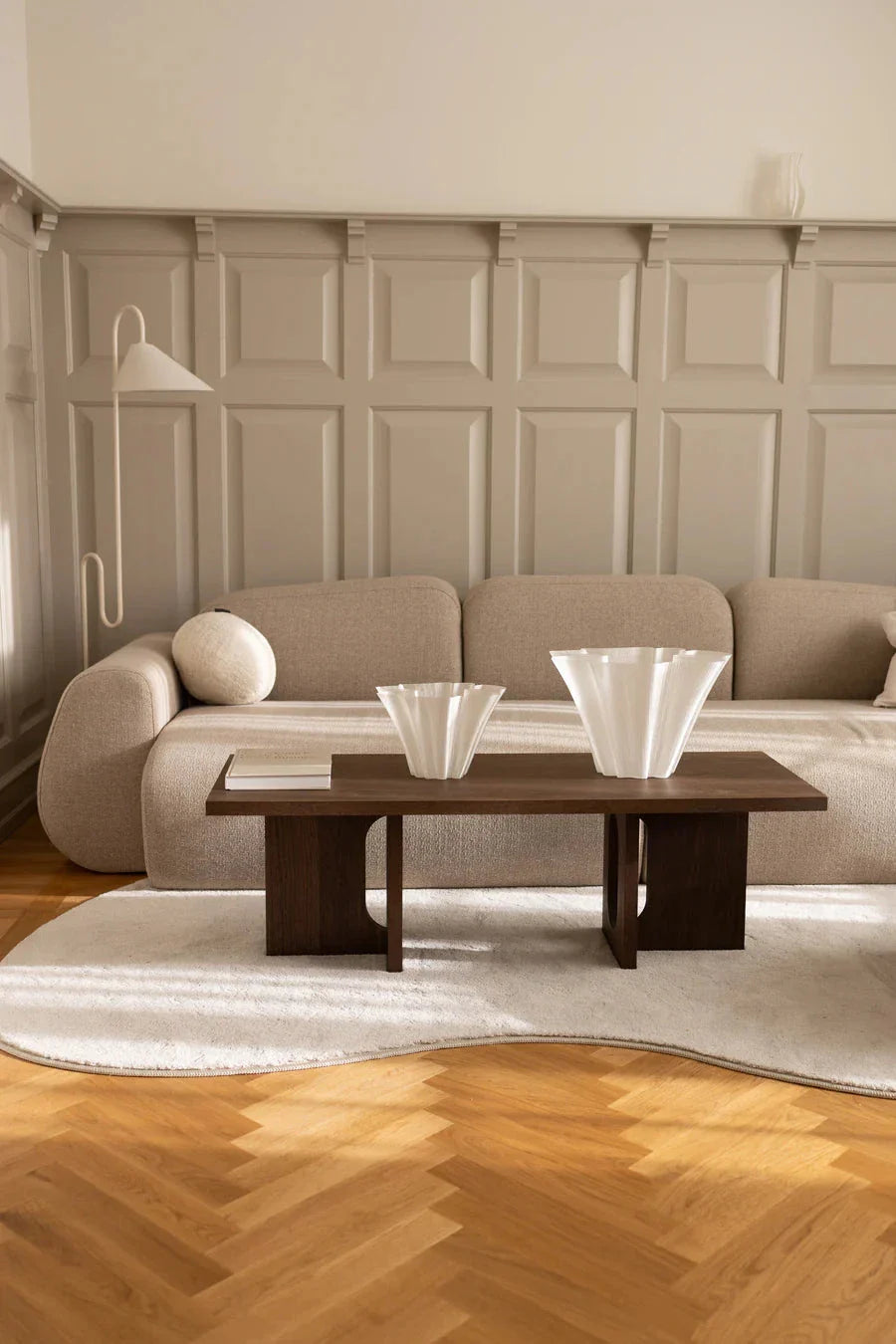 Gjennomsiktig vase fra Bloom Objects med en bølget, korallinspirert form. Produsert med 3D-printteknologi i biobasert PLA og produsert lokalt i Danmark.