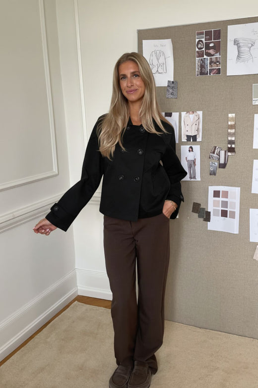 Svart vest fra BYIC med V-hals og to knapper foran. Den ermeløse modellen er designet for å matche Celina-buksene og har en rett passform.