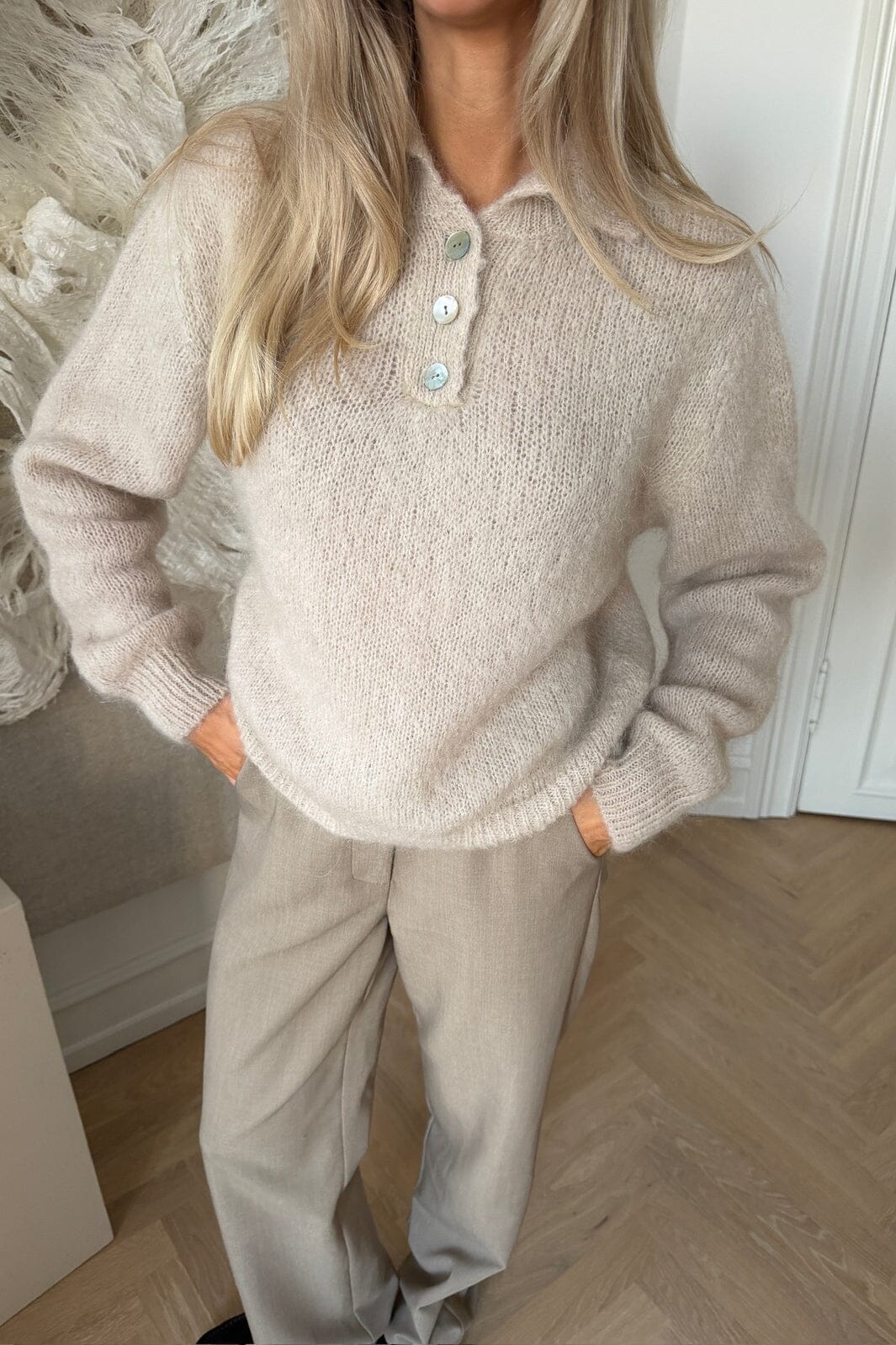 Poloskjorte fra BYIC i beige. Strikket i en blanding av mohair, akryl, polyamid og ull med en klassisk polokrage og knappelukking.