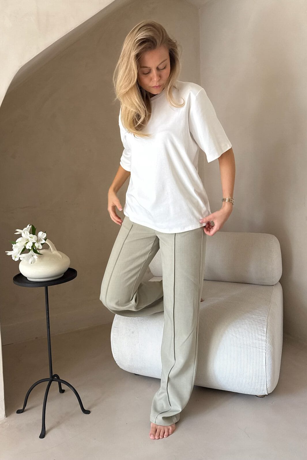 Hvit t-skjorte fra BYIC med løs passform og rund halsutskjæring. T-skjorten har korte ermer og en avslappet silhuett, som passer til både trening og avslapning.
