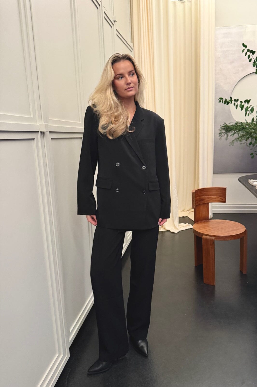Sort dobbeltspent blazer fra BYIC med oversized passform. Blazeren har V-hals, lange ermer og en splitt bak.