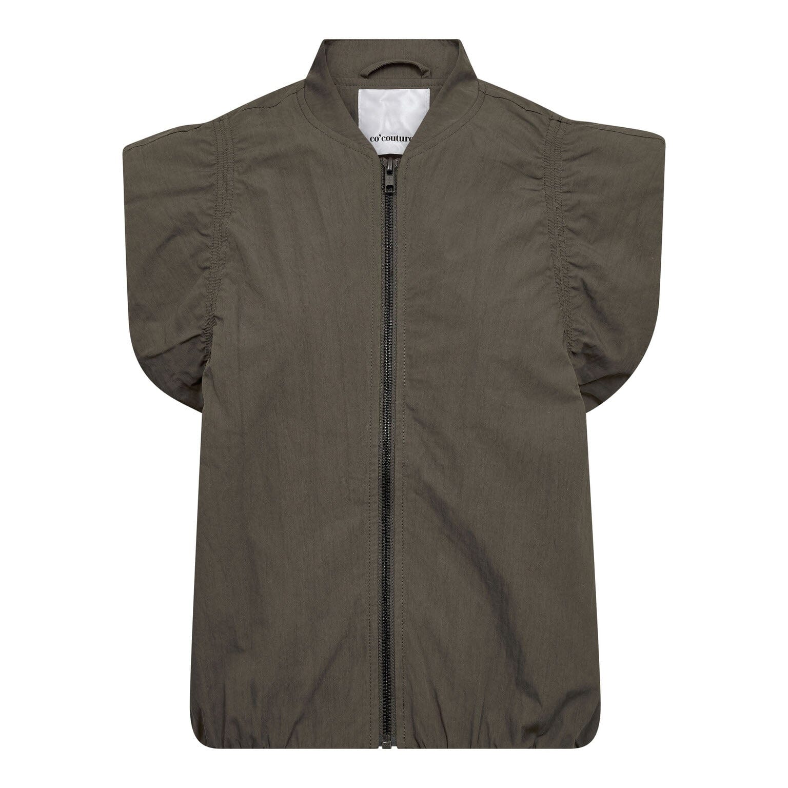 Ermeløs vest fra Co´Couture i en dyp armygrønn farge. Vesten har et ermeløst design med puffede skuldre og en høy halsutringning.
