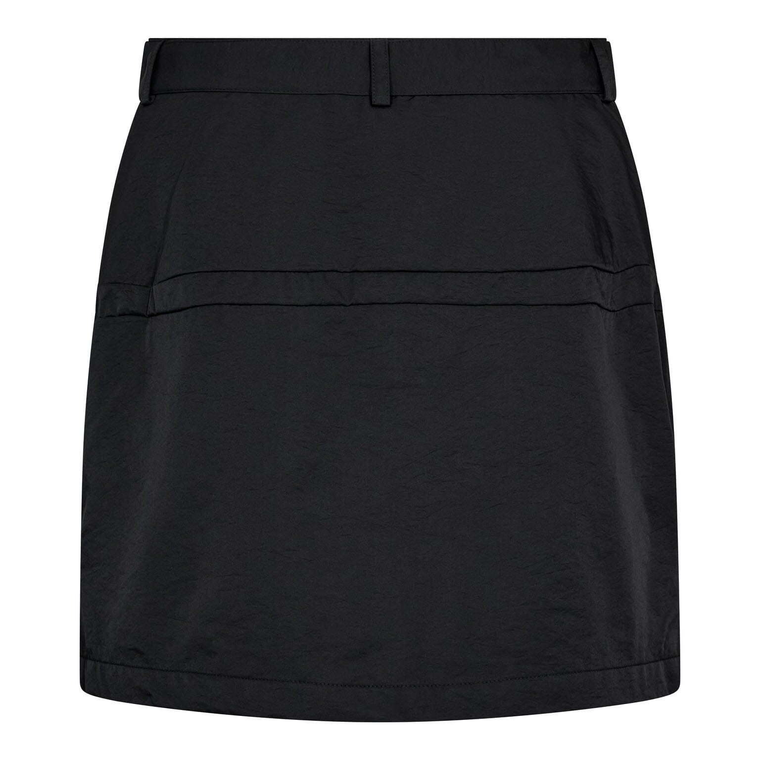 Sort skjørt fra Co´Couture. Det har et belte med spenne og to frontlommer med klaffer, som gir et funksjonelt uttrykk.