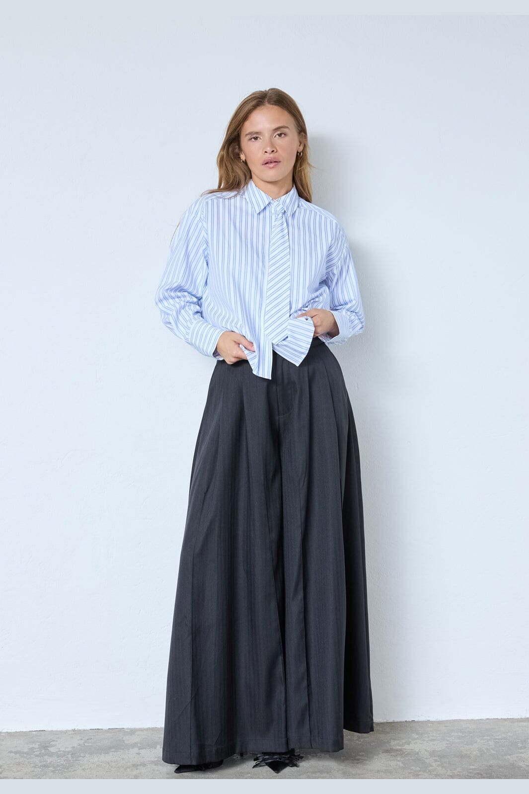 Stripete skjorte fra Co´Couture i blått og hvitt. Skjorten har knytebånddetaljer foran og en klassisk skjortekrage.