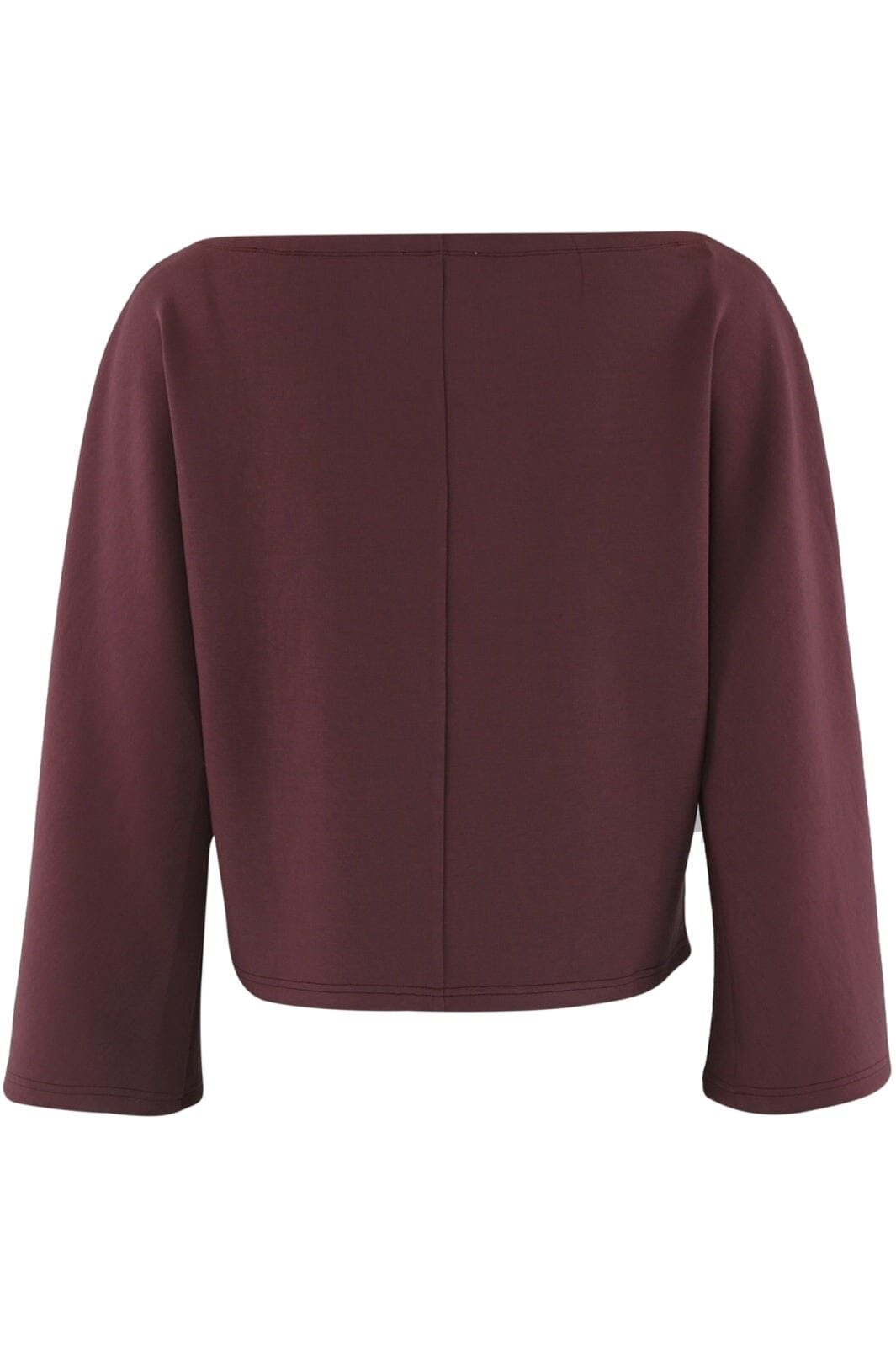 Bordeaux bluse fra Continue i en løs passform. Blusen har 3/4-ermer og en ensfarget overflate.