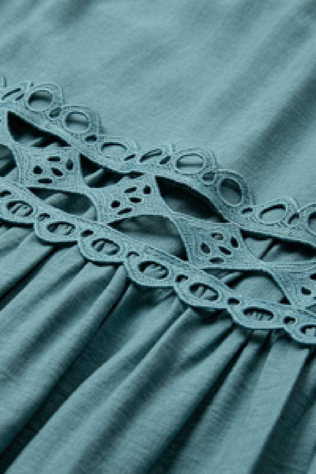 En skjørt fra Copenhagen Muse i en arktisk fargetone. Den har et lagdelt design med blondekanter og volanger som skaper et feminint uttrykk.