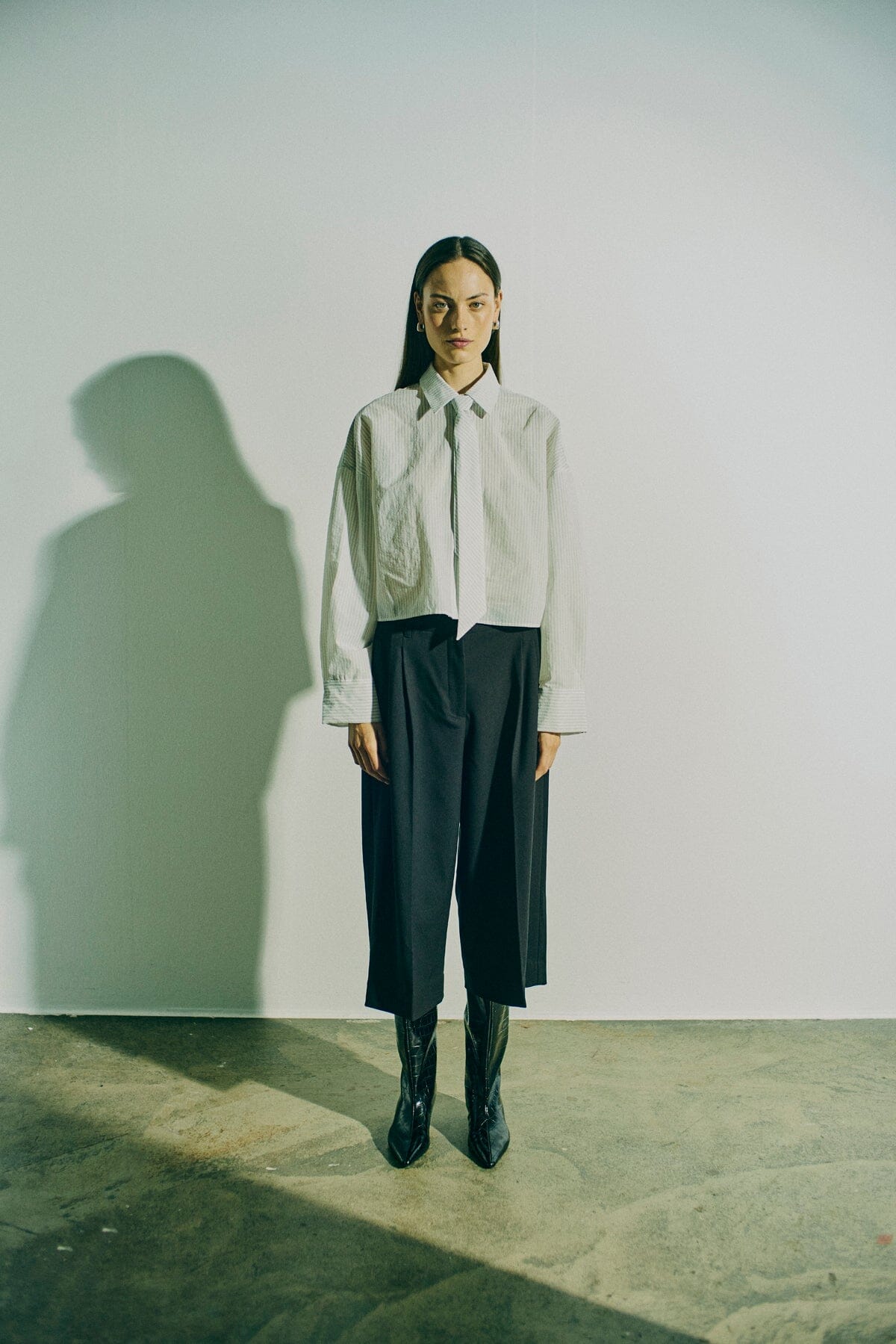 Stripet hvit skjorte fra Copenhagen Muse. Skjorten passer til både formelle og avslappede anledninger med sin stripete kvalitet og matchende slips.