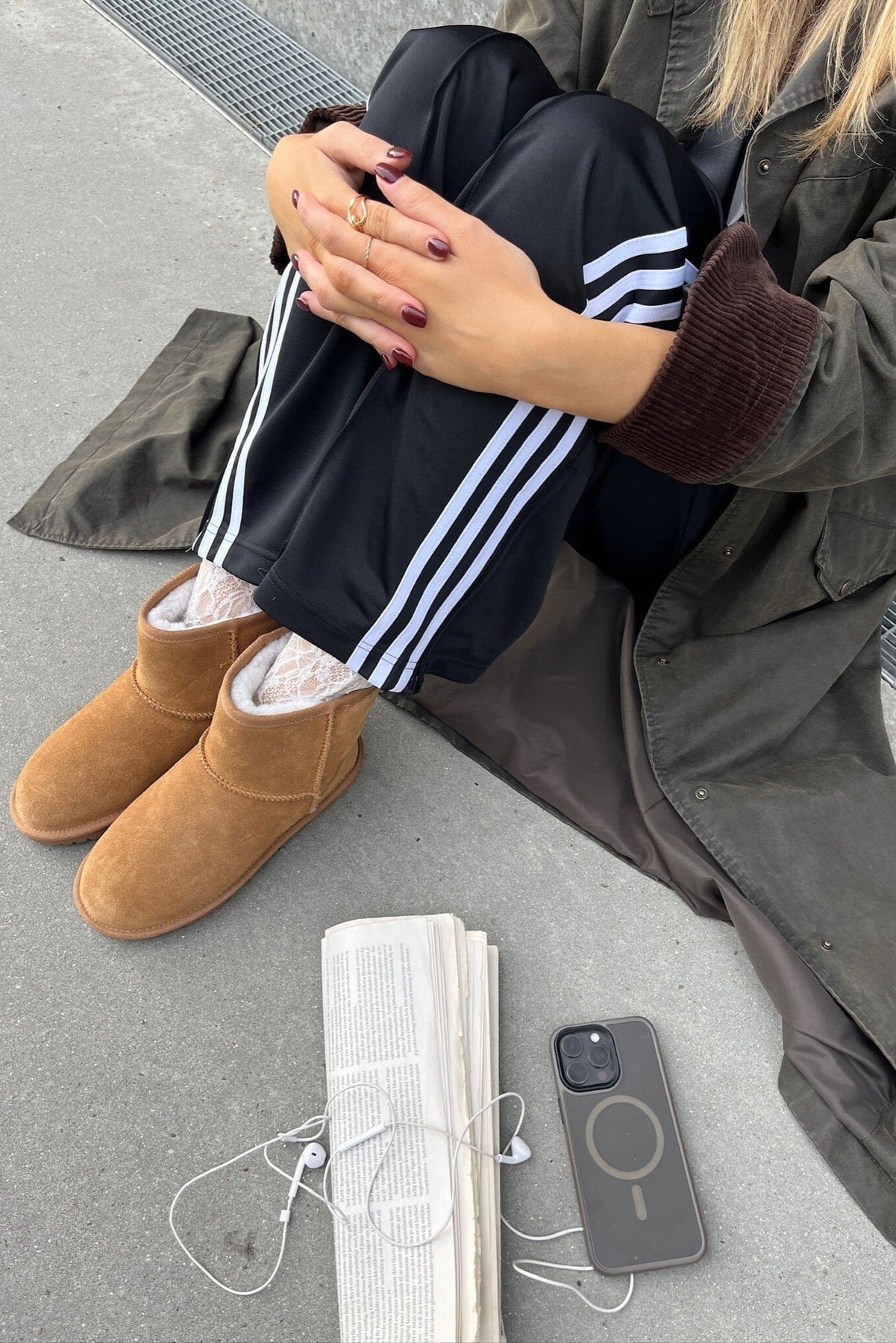 Ankelstøvler i kamelfarget semsket skinn og lær fra Copenhagen Shoes. Støvlene har en myk overflate og et varmt teddyfôr som gjør dem ideelle for bruk hjemme.