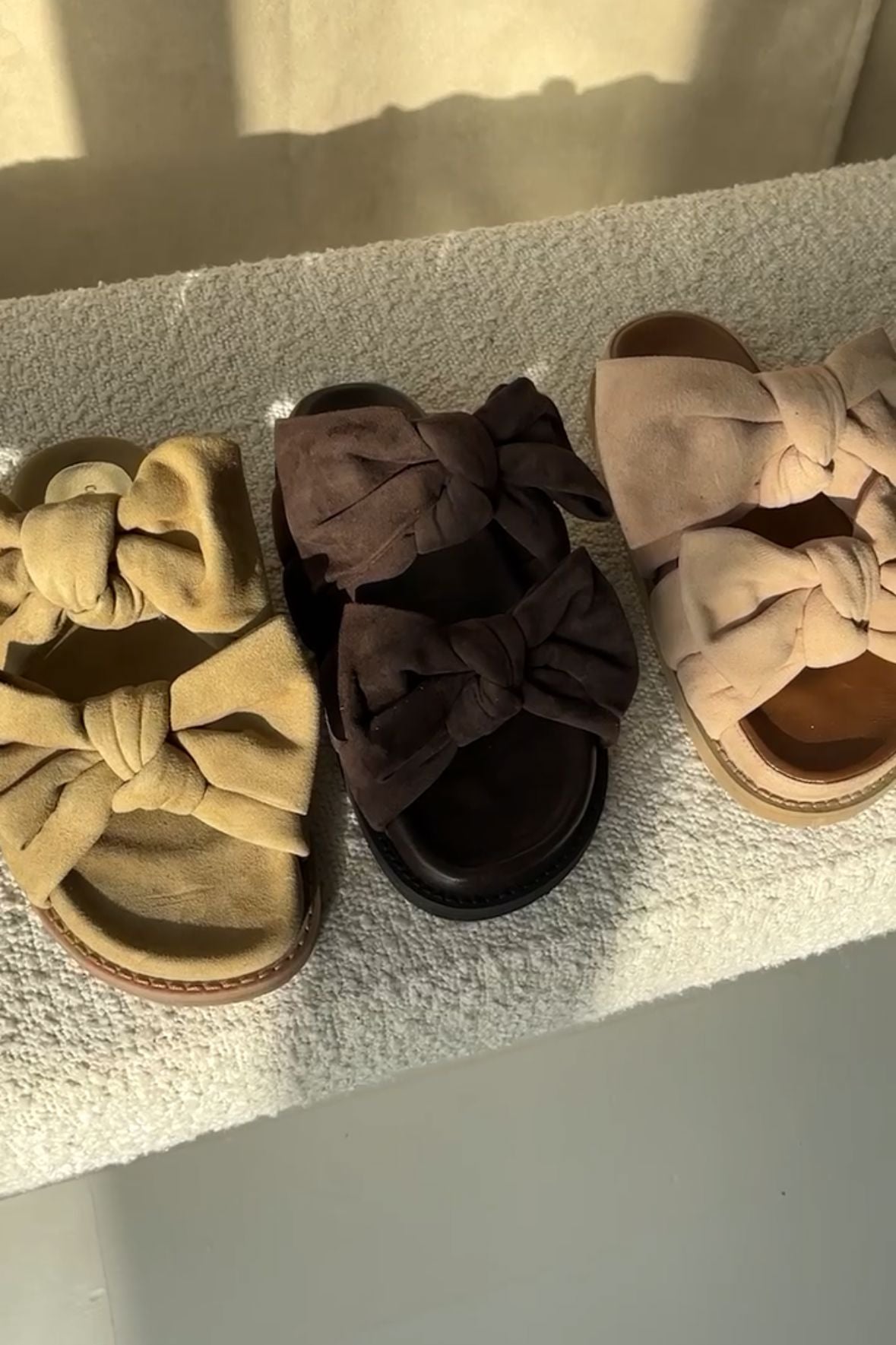 Vakre sandaler i mykt semsket skinn med to store dekorative sløyfer. Innersålen er i skinn og foret med vår spesielle Copenhagen Shoes latexsåle, som er herlig myk å gå på. Lette og fleksible yttersåler i EVA.
