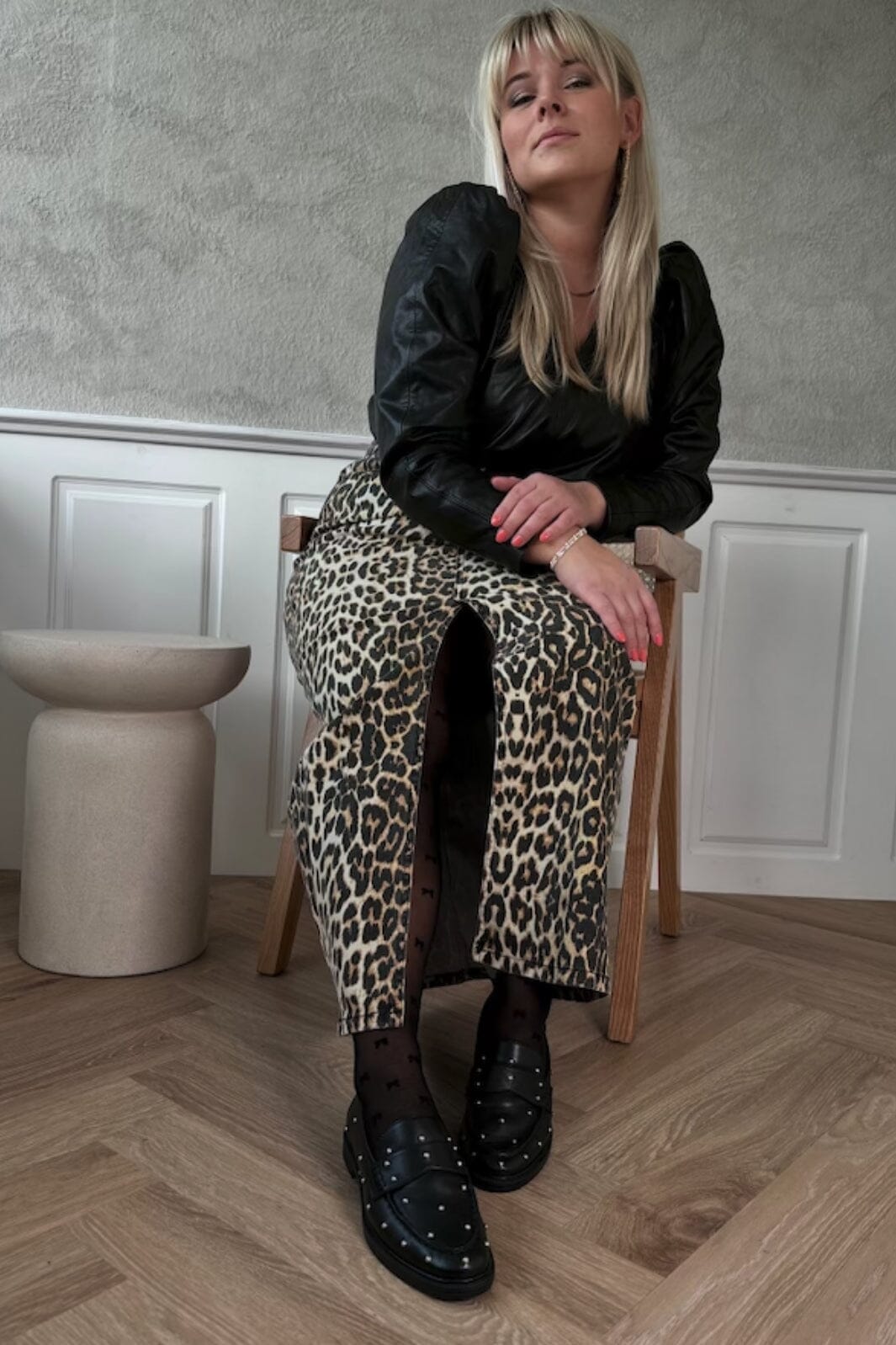 Svart lærskjorte med perledetaljer og dyreprint. Skoen har en romslig passform og lav såle, noe som gjør den praktisk for både fest og formelle anledninger.