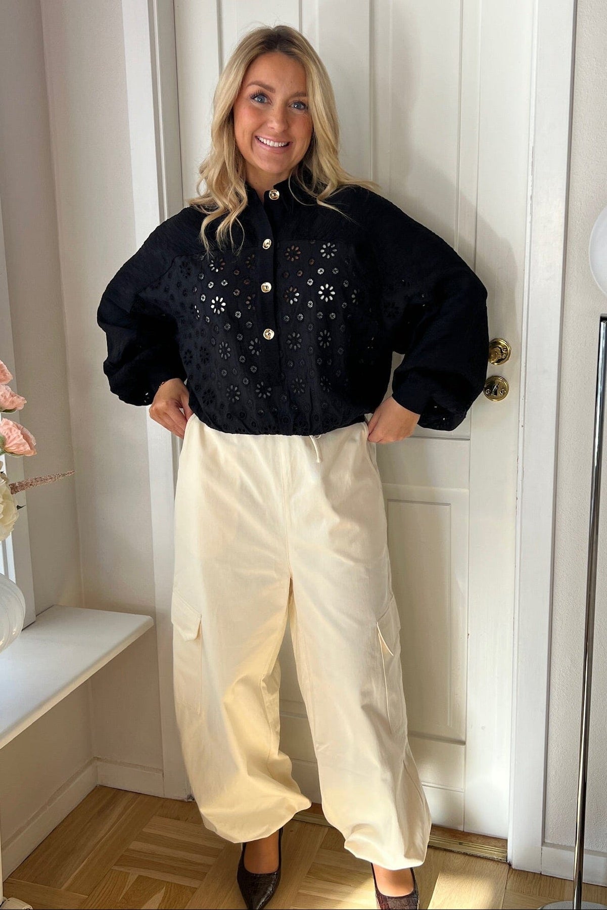 - Brodert blomsterdesign på fronten