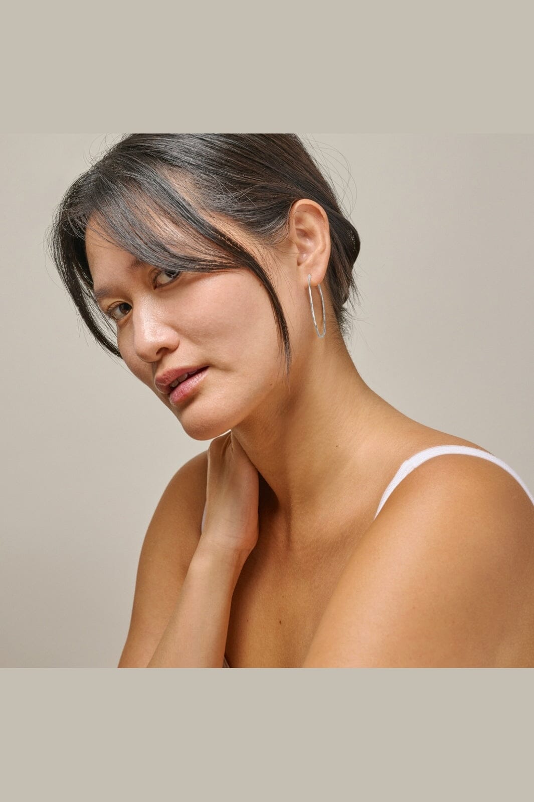 Hoops fra Enamel Copenhagen, laget av resirkulert 925 sterlingsølv. Disse øredobbene har en hamret overflate med et organisk design.