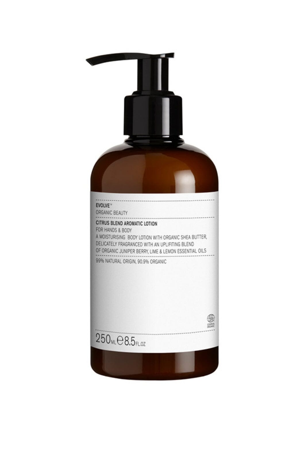 Bodylotion fra Evolve med økologisk sheasmør og eteriske oljer. Lotionen har en kremet konsistens og en frisk duft av einer, lime, sitron og basilikum.