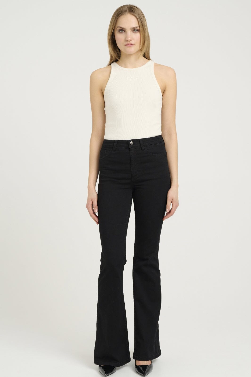 Ermeløs tanktop fra Gestuz i White Onyx. En ribbet topp med DG-logo brodert på forsiden og rund halsutskjæring.