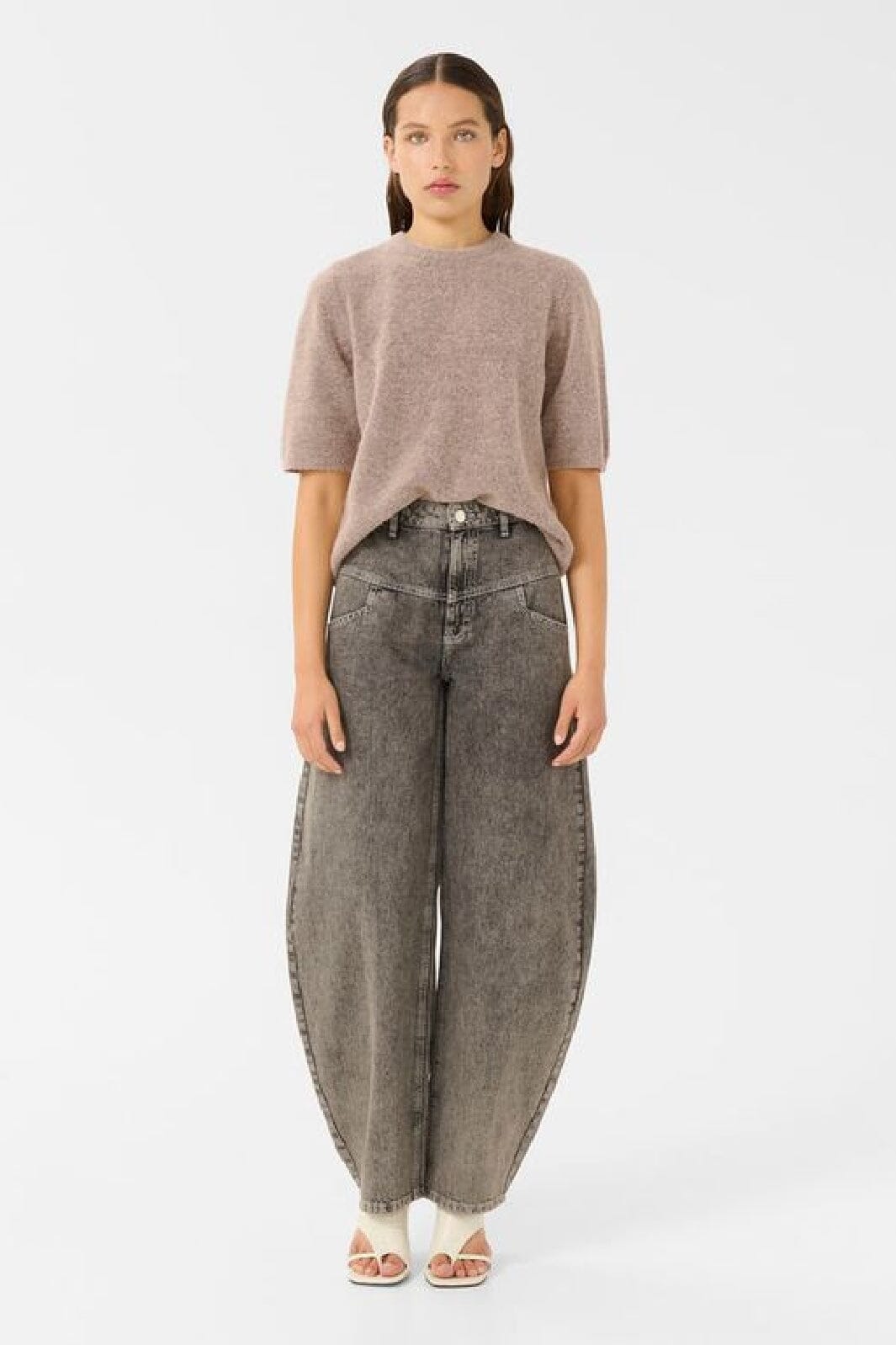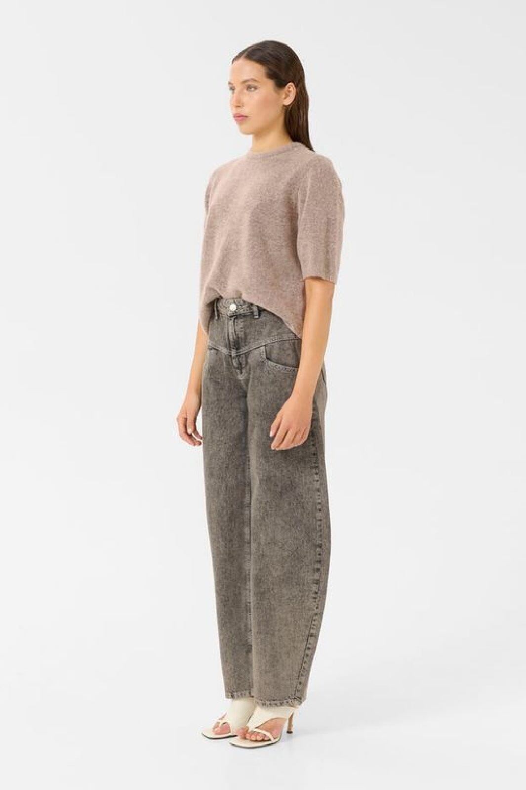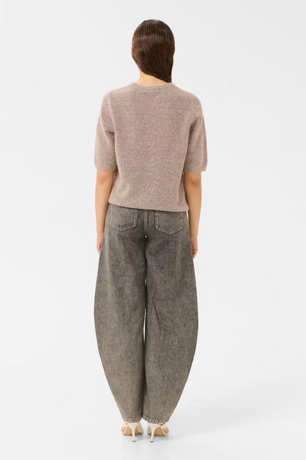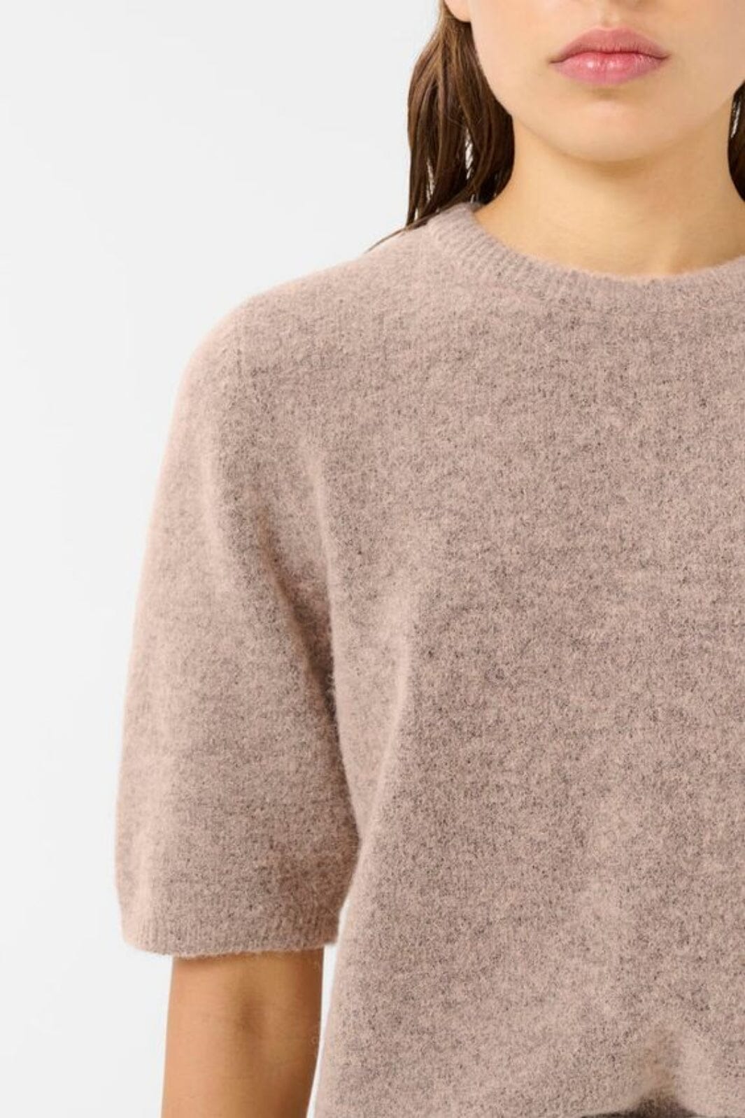 Kortermet genser fra Gestuz i rose dust melange. Den har en rund halsutskjæring og en regular fit. Genseren er laget av en myk blanding av ull og andre materialer.
