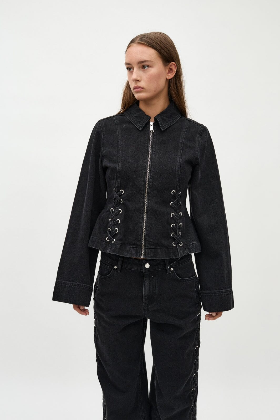 Svart skjorte fra Global Funk med skjortekrage og lange ermer. Skjorten har både glidelås og snøredetaljer som gir den et spesielt preg. Bomullsmaterialet sikrer god komfort.