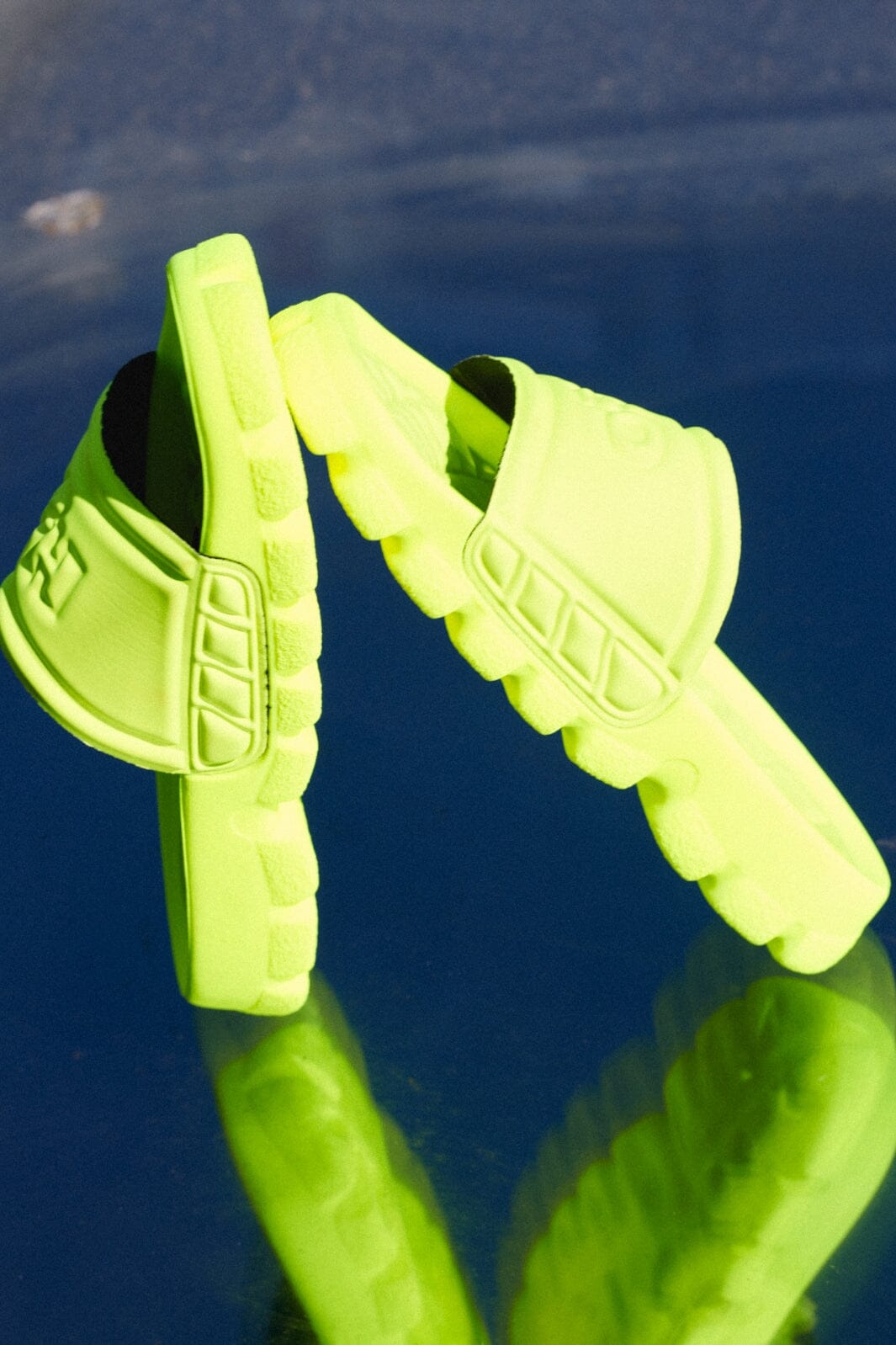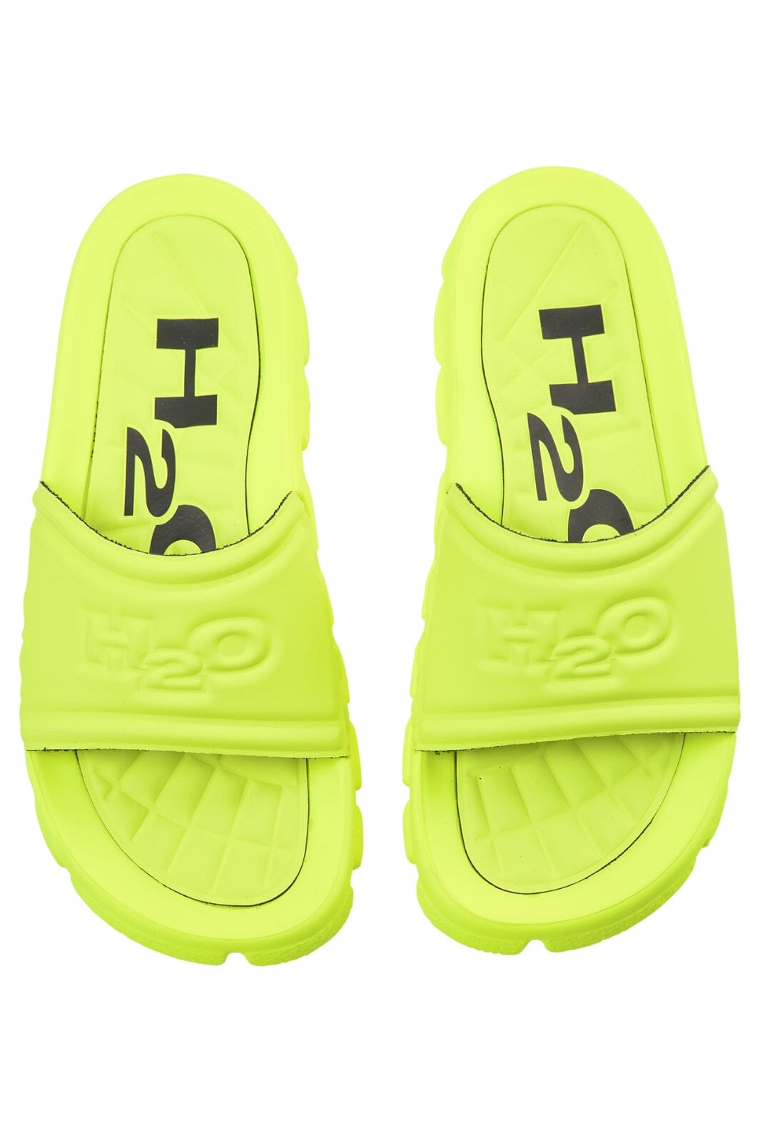 Badesandal fra H2O med kraftig såle, produsert i Italia siden 1982. Den neongule sandalen har en robust konstruksjon og er spesialdesignet for bruk ved basseng og strand.