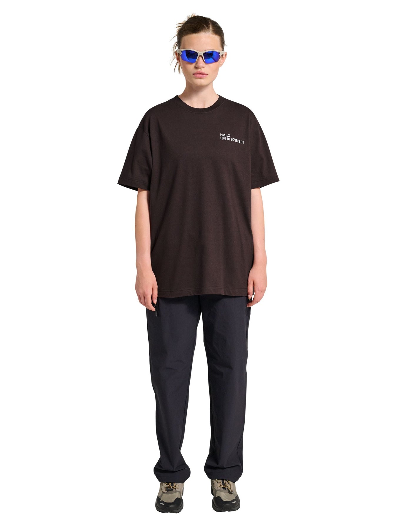 Mørkebrun t-skjorte fra HALO, laget av 100 % økologisk bomull. T-skjorten har korte ermer og en løs passform med F.U.T.-tekst på ryggen.