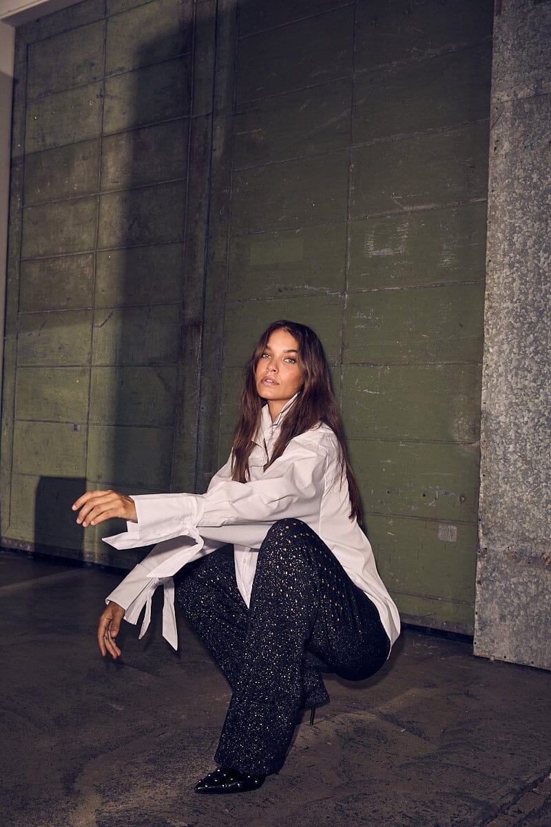 Hvit skjorte fra Haute L'Amitié med oversized passform og knytbare mansjetter. Skjorten har en klassisk skjortekrage og knappelukking.