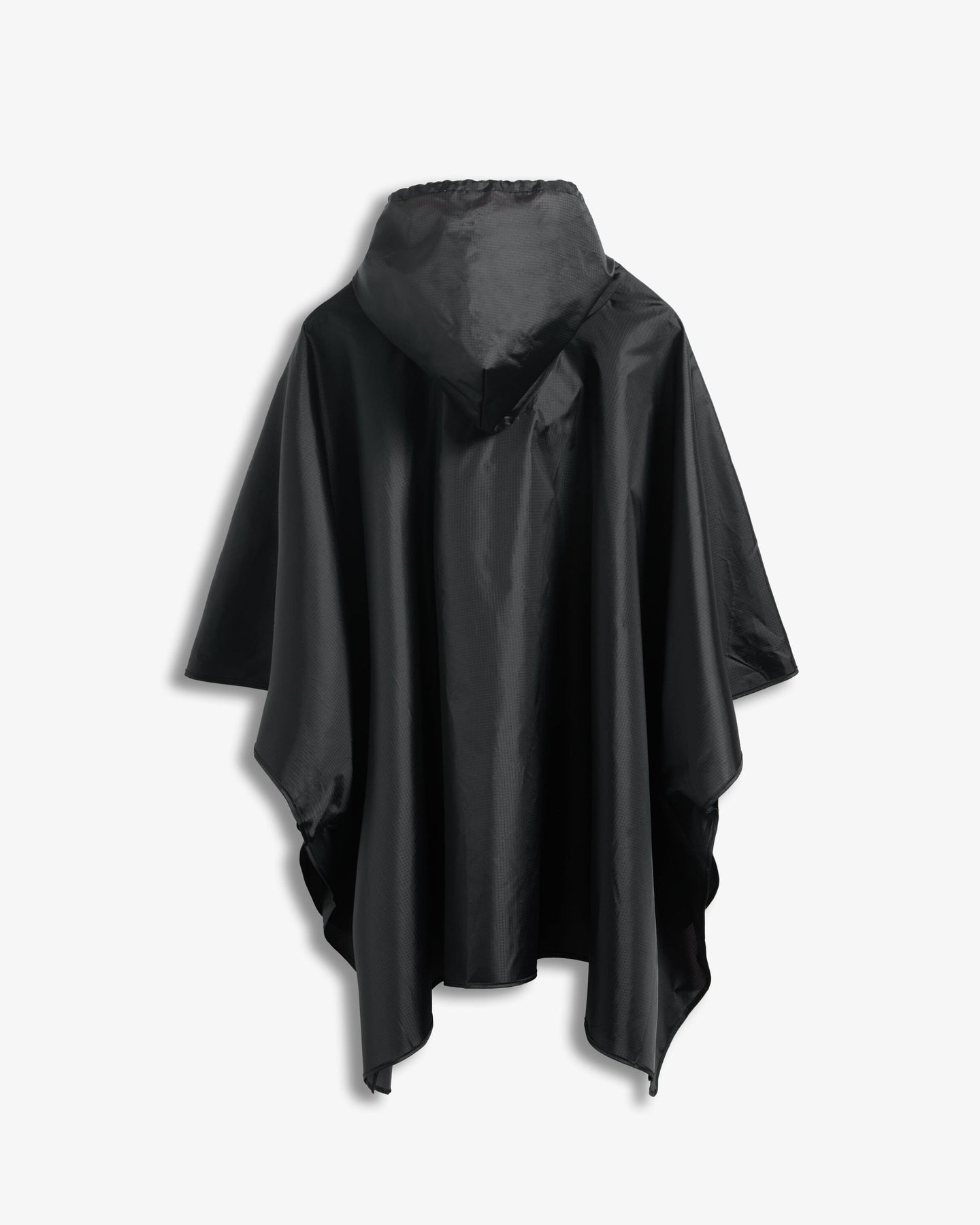 Svart poncho fra Hunter, laget av 100 % nylon. Den har en hette og en løs passform som gir god beskyttelse mot regn.