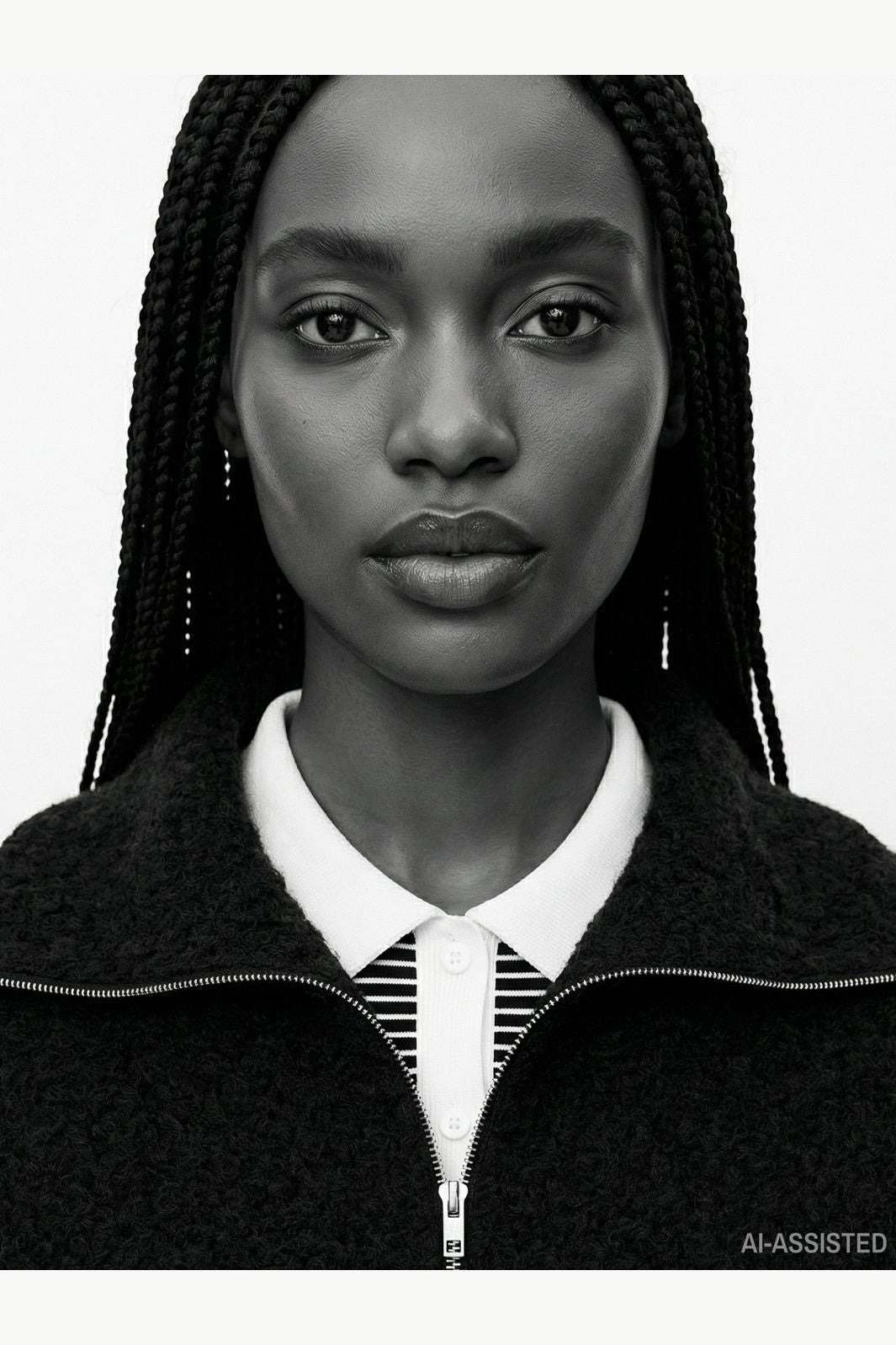 Sort cardigan fra Hypedrop, laget av 100 % polyester. Cardiganen har en bred skjortekrage og lukkes med glidelås.