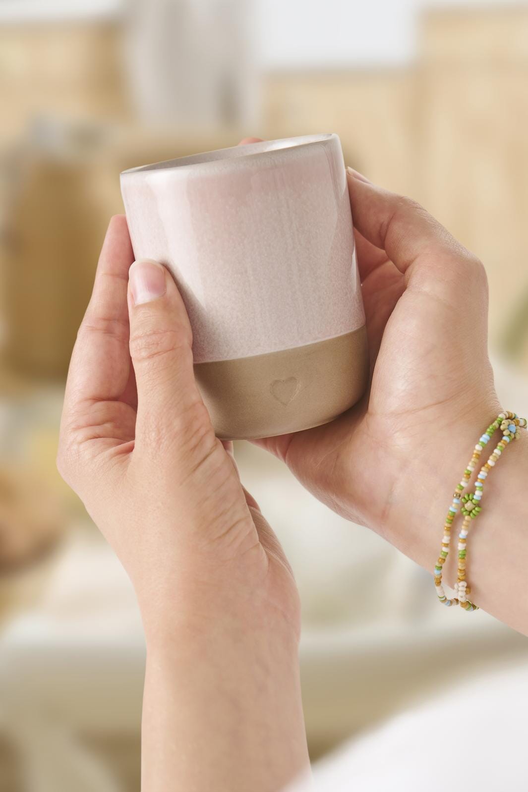 Ib Laursen Krus u/hank Heart mat brunt ler m/rosa kant 190 ml Farge: Stentøj