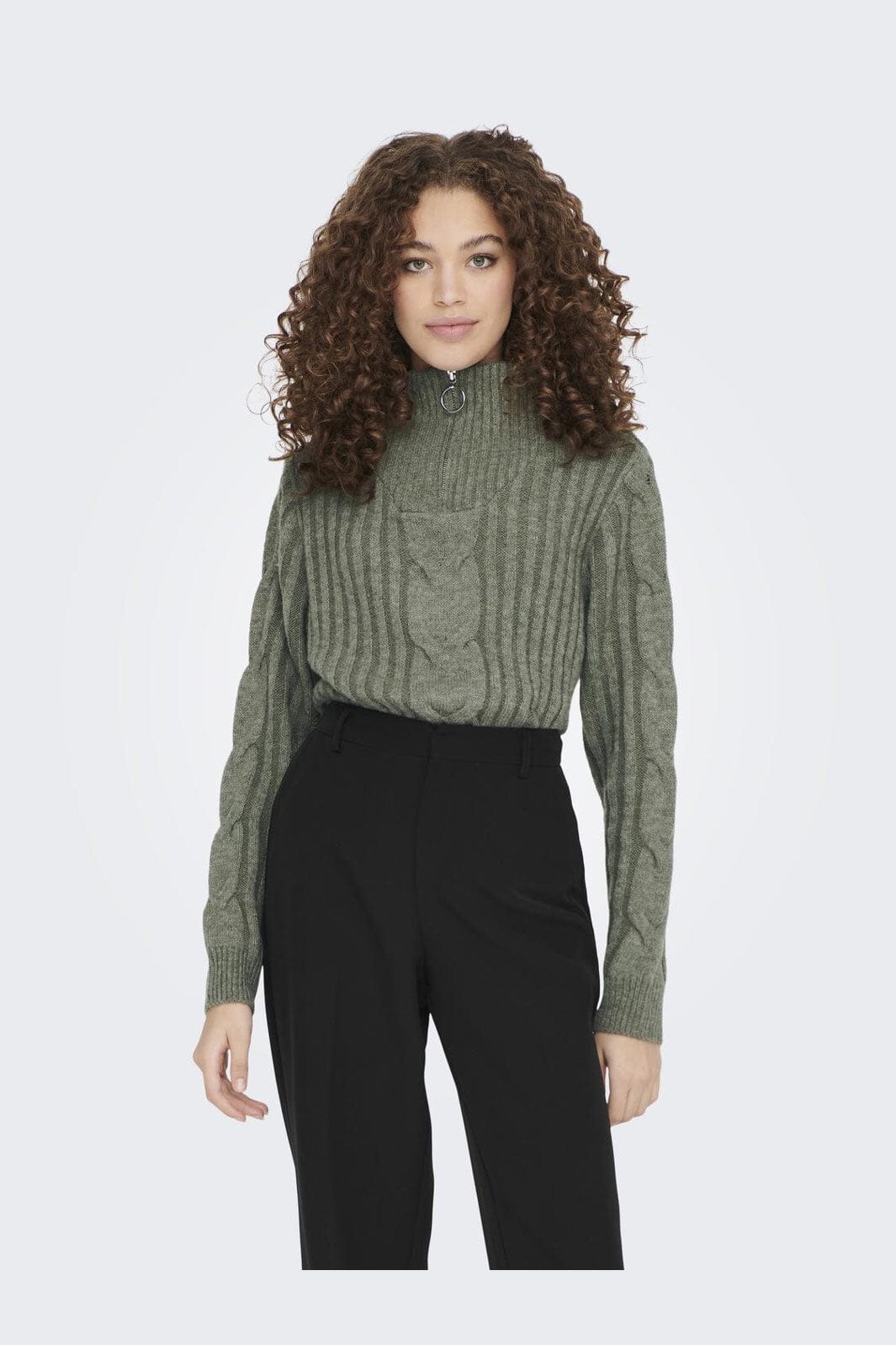 JDY Jdyandrea L/S Zip Cable Pullove Knt Farge: 4086987 Kalamata Melange