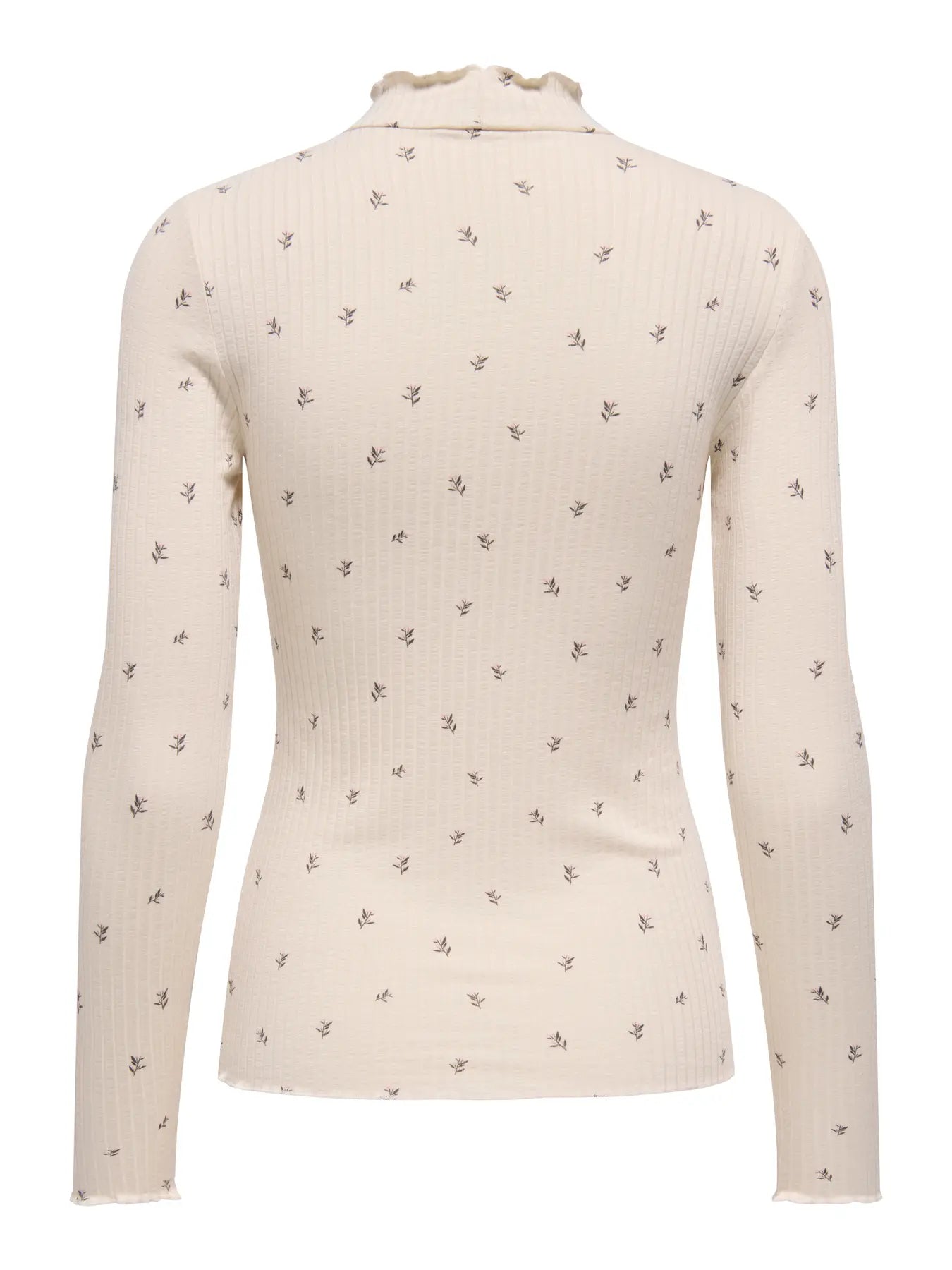 JDY Jdyfransiska Life L/S Hi-Nck Top Farge: 5067469 Whitecap Gray Pink Lady Flower