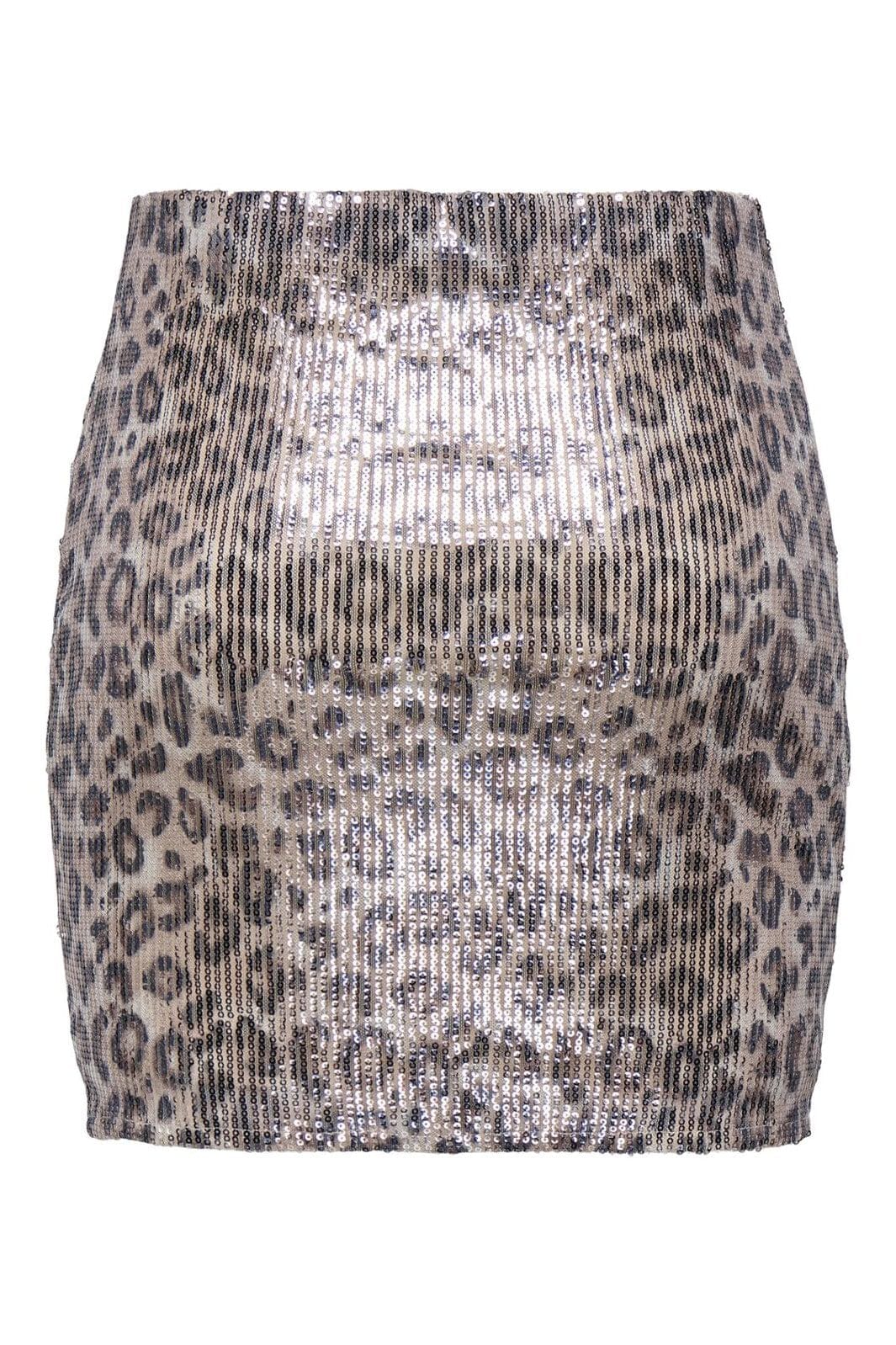 JDY Jdyleona Sequins Mini Skirt Farge: 4840290 Brown Rice Brown Leo Sequins