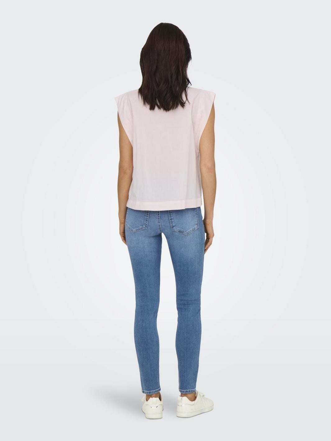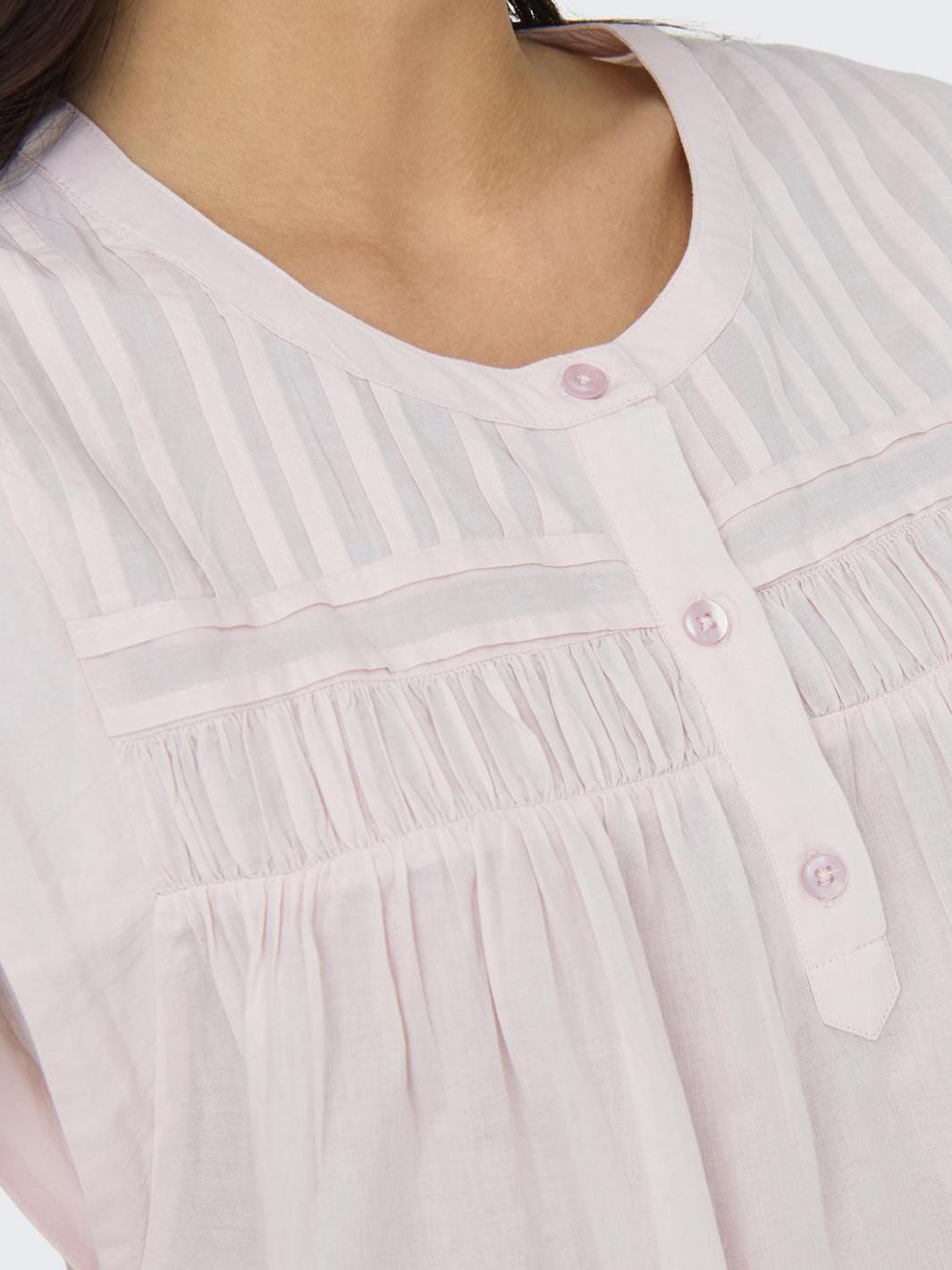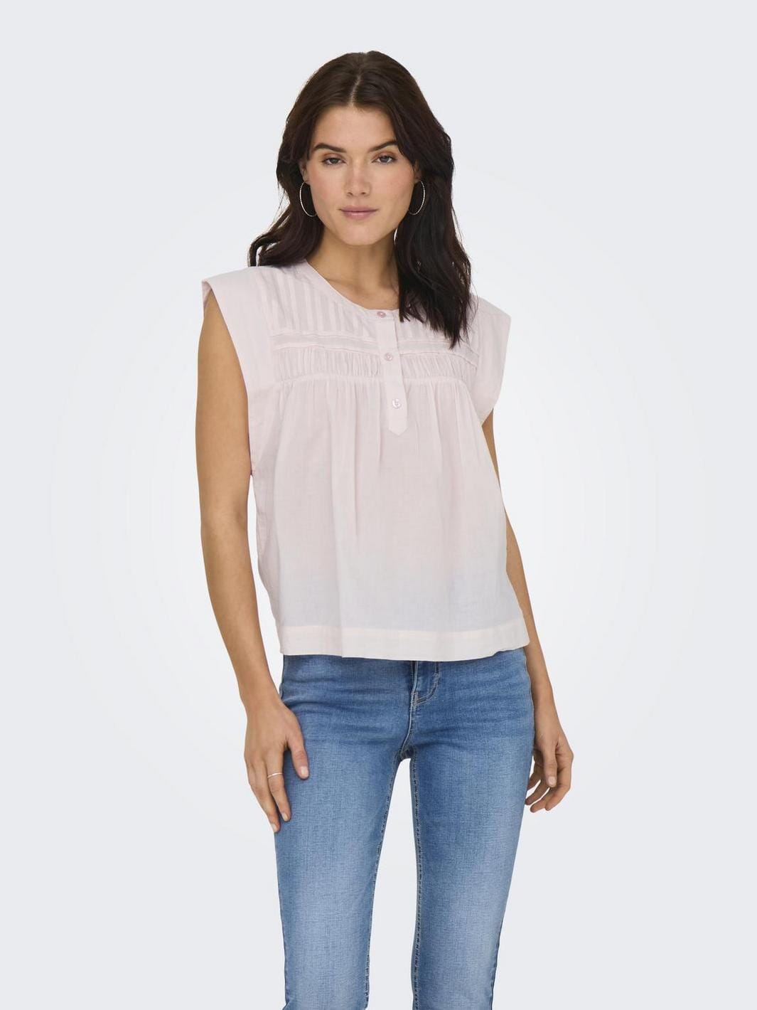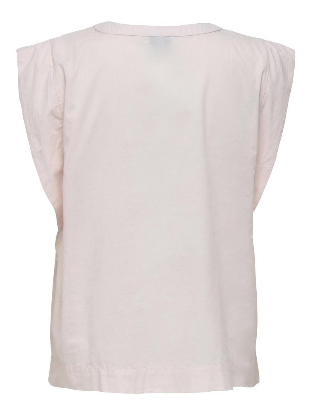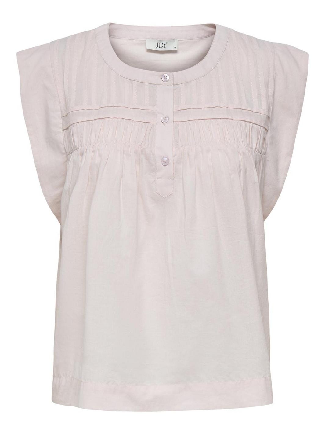 Ermeløs skjorte fra JDY i en lys rosa potpourri-farge. Skjorten har en løs passform med båndkrage og halvknapping foran, som gir et rent og enkelt uttrykk.