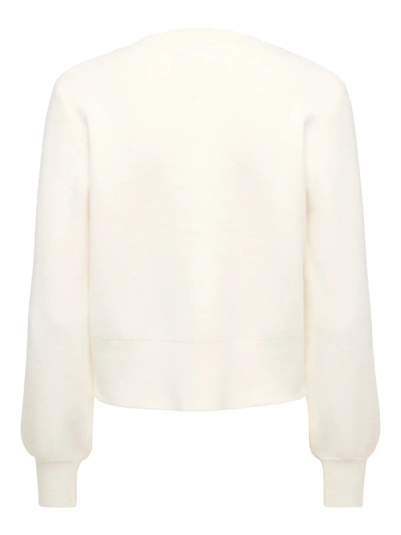 Strikket cardigan fra JDY i fargen Cloud Dancer, en offwhite nyanse. Cardiganen er laget av 50 % resirkulert polyester, 28 % polyester og 22 % viskose.